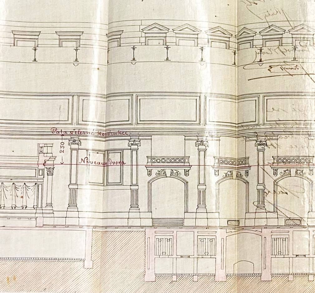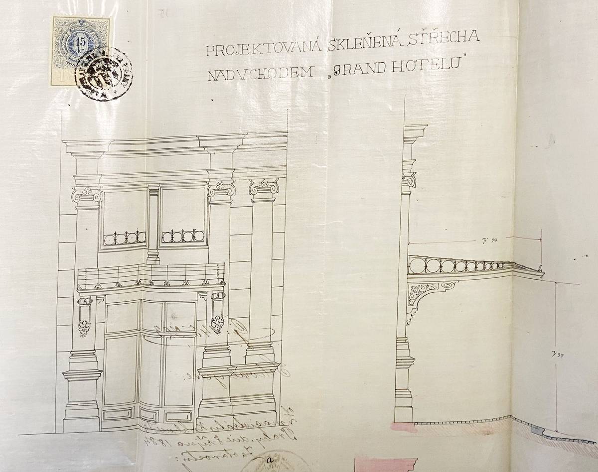 Na detailu stavebního plánu je vidět původní zdobnost fasády.