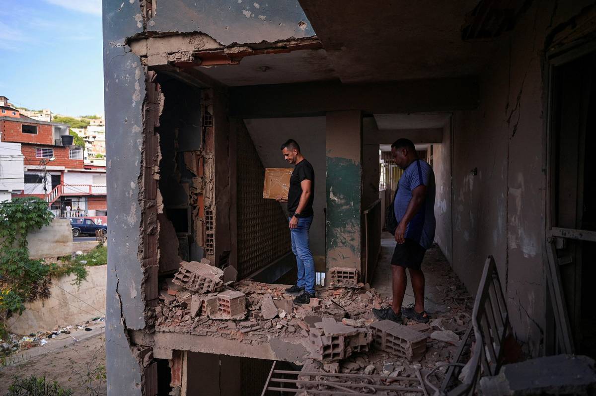 Americká armáda provedla údery na Caracas a okolí v sobotu 3. ledna brzy ráno místního času. Tento snímek vznikl v neděli v pobřežním městě Catia La Mar nedaleko Caracasu, kde americký úder zasáhl třípodlažní budovu. Nejméně jeden člověk tam zemřel.