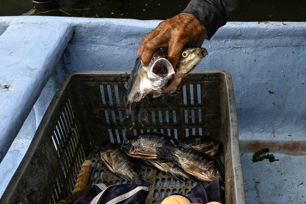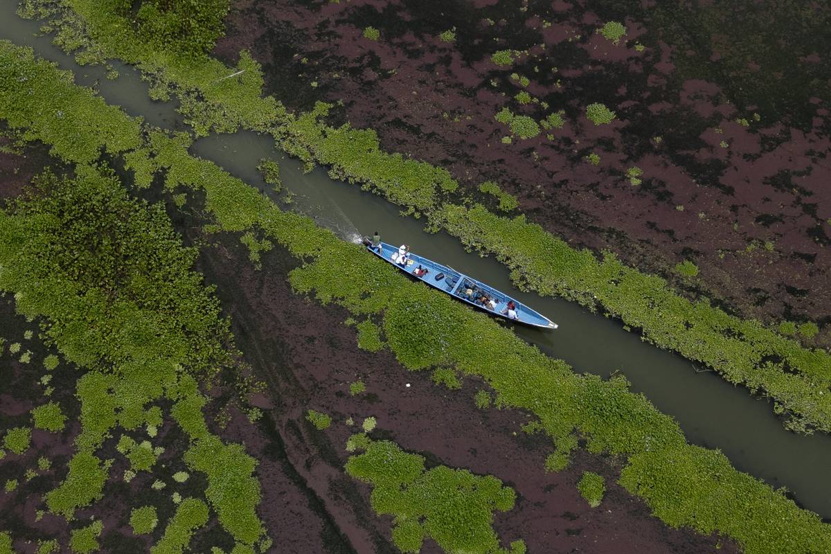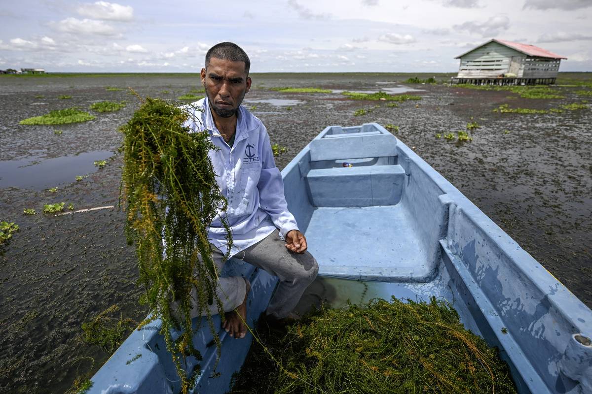 Stejně jako Gutiérrez uvažuje o odchodu i 70letý Aníbal Antonio Rodríguez. „Co s tím plevelem tady nahoře? Nemůžeme si vzít kánoi a vyrazit na ryby tak jako dřív.“ (Rybář Breider Rodríguez odstraňuje přeslenici, 6. září.)