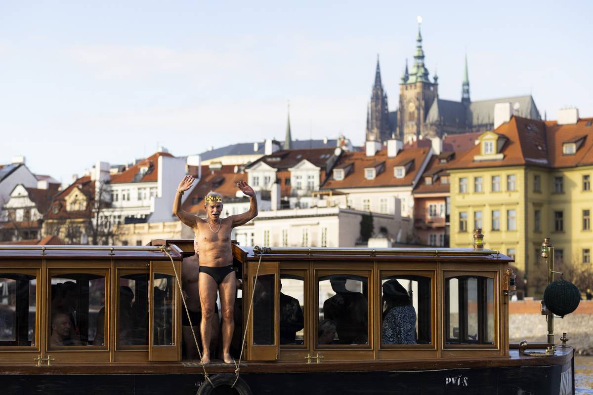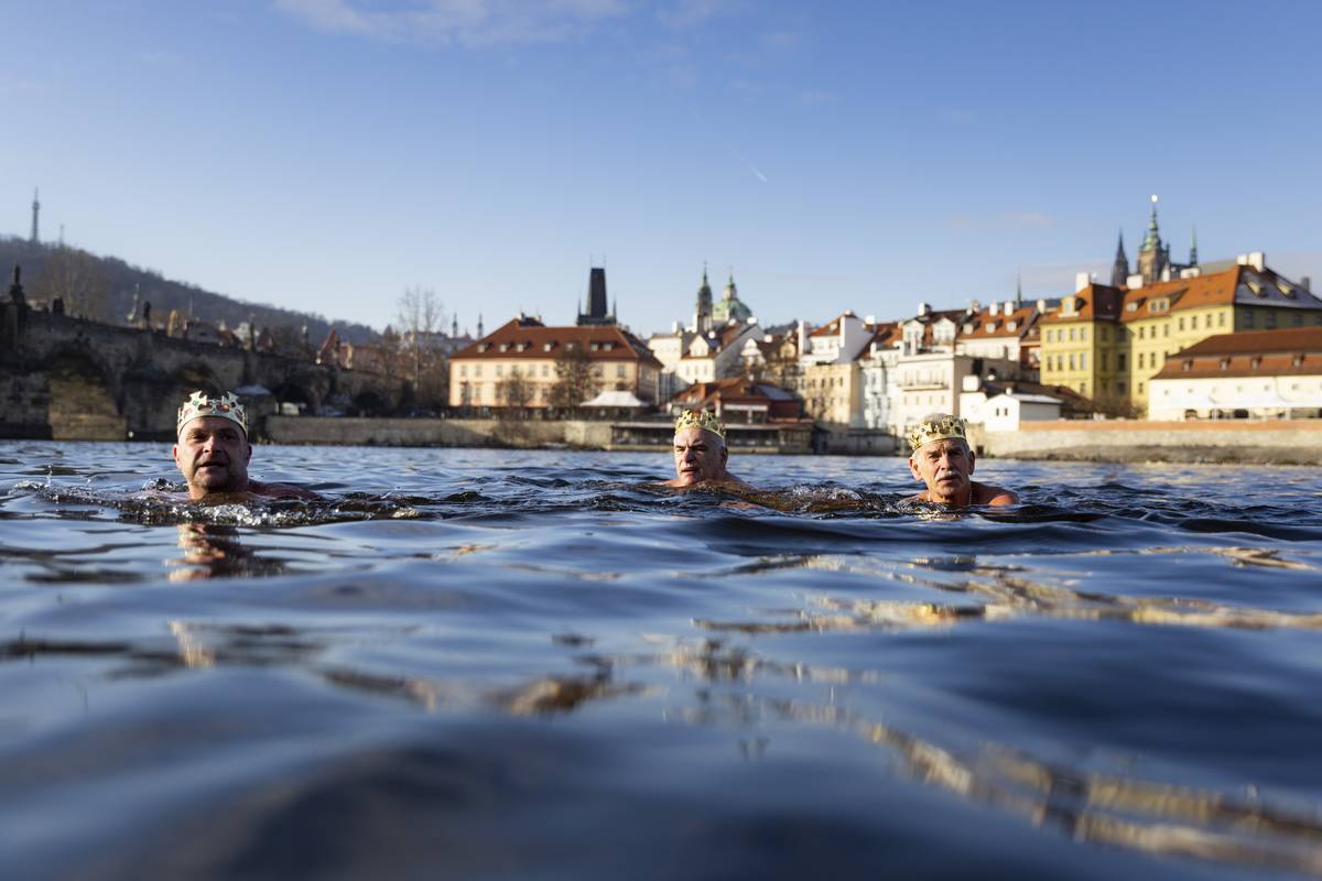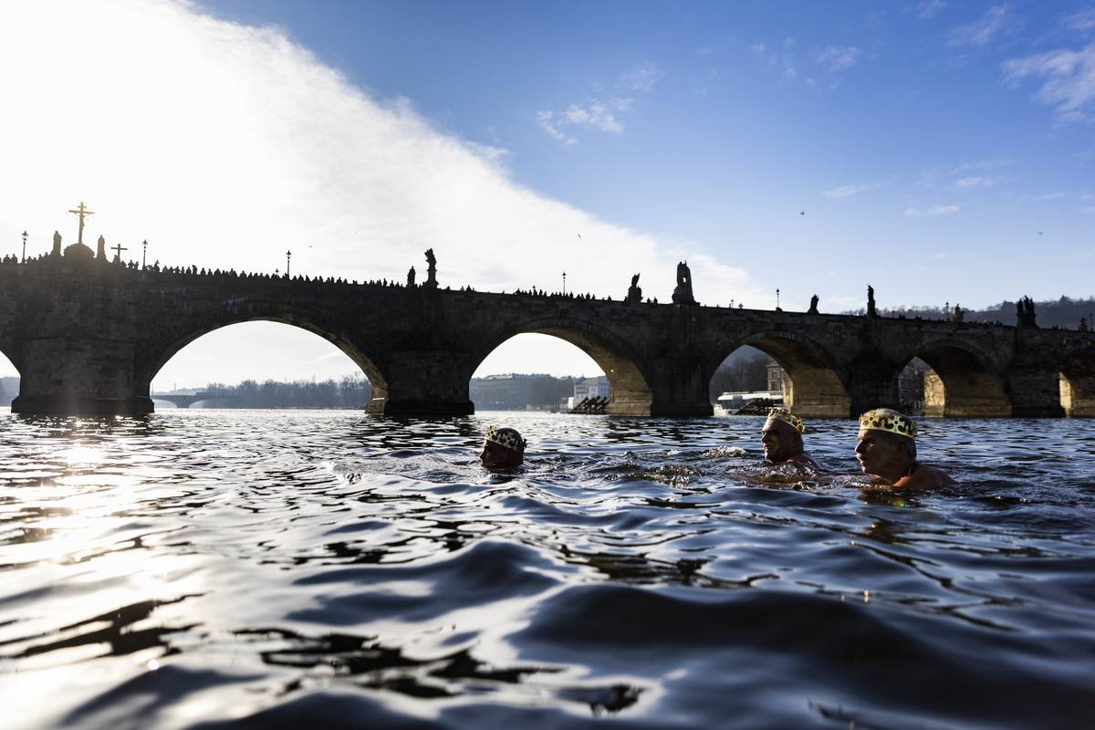 O den později se více než 30 otužilců zúčastnilo tradičního tříkrálového plavání ve Vltavě u Karlova mostu v centru Prahy.
