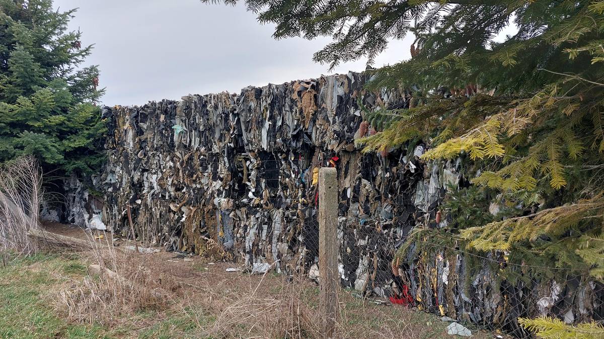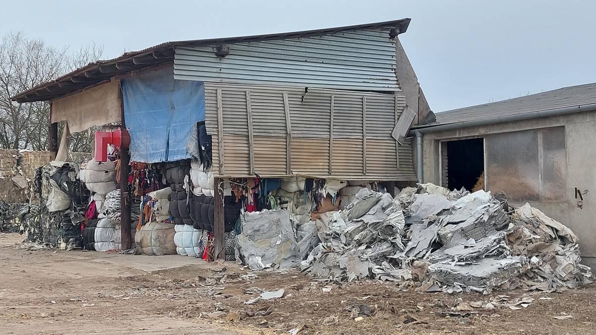 Haly v bývalém JZD jsou po okraj naplněné textilním odpadem z Itálie.