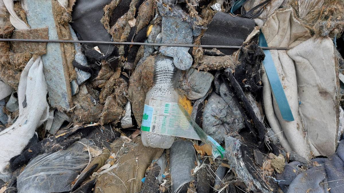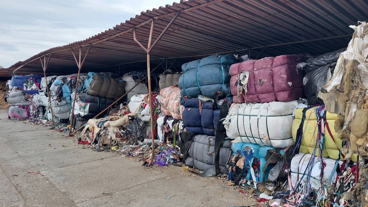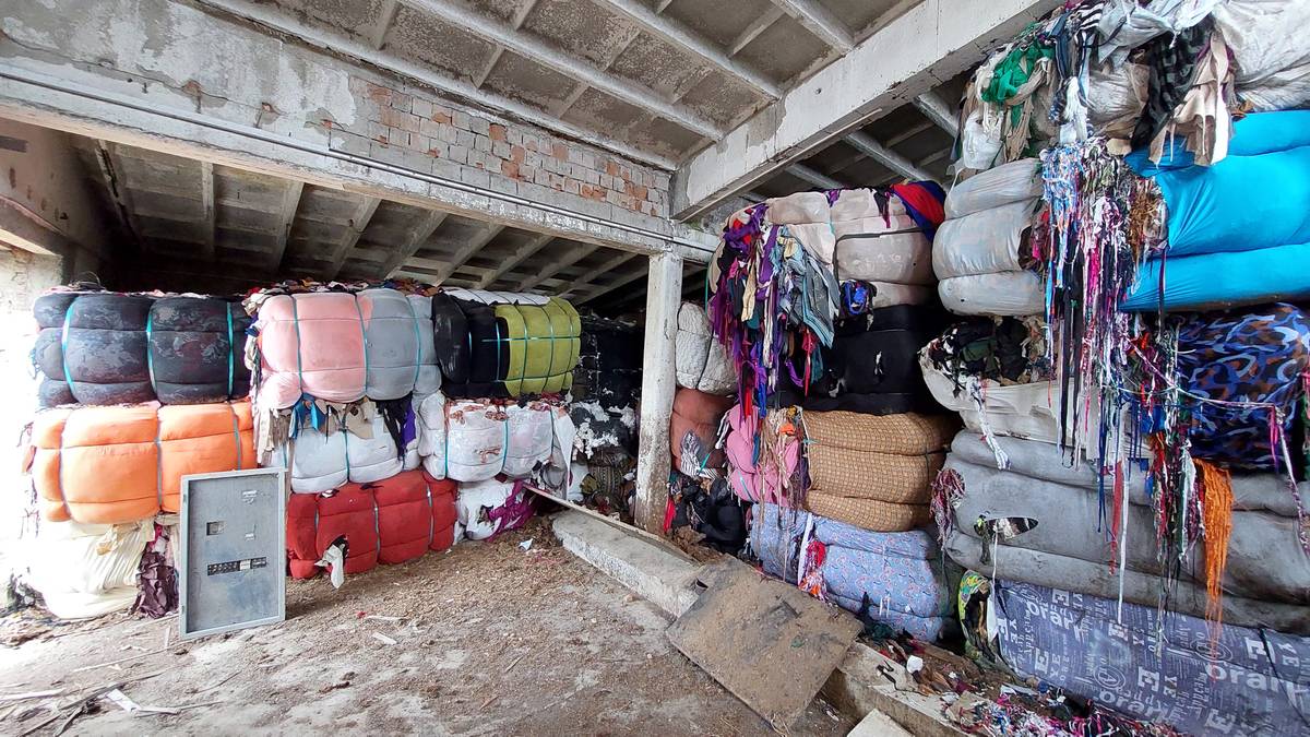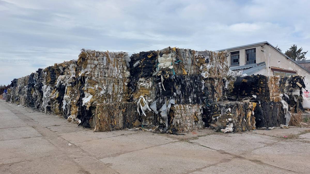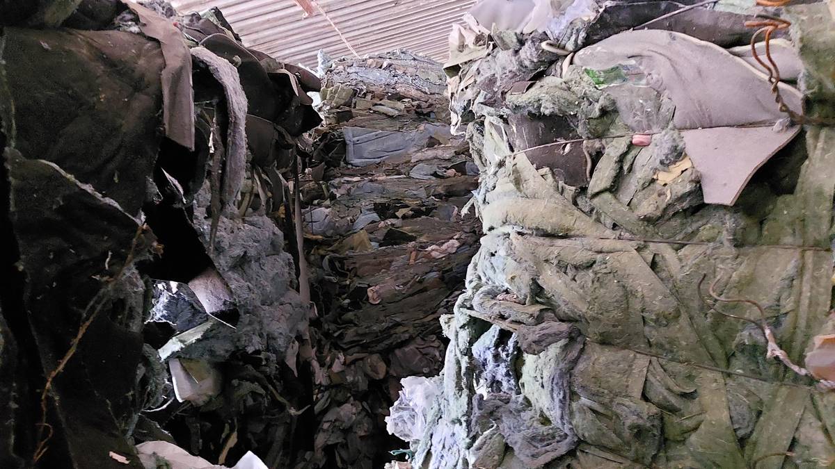 Od podlahy po strop. Od dveří ke dveřím je uložen především textilní odpad.