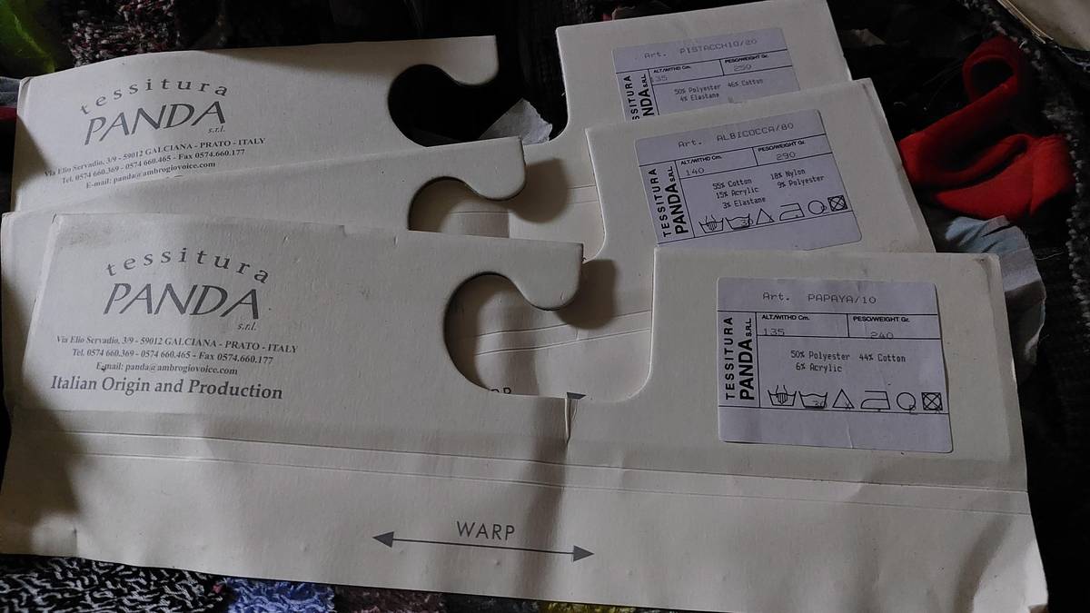 Na mnoha textilních útržcích jsou etikety italské textilky.