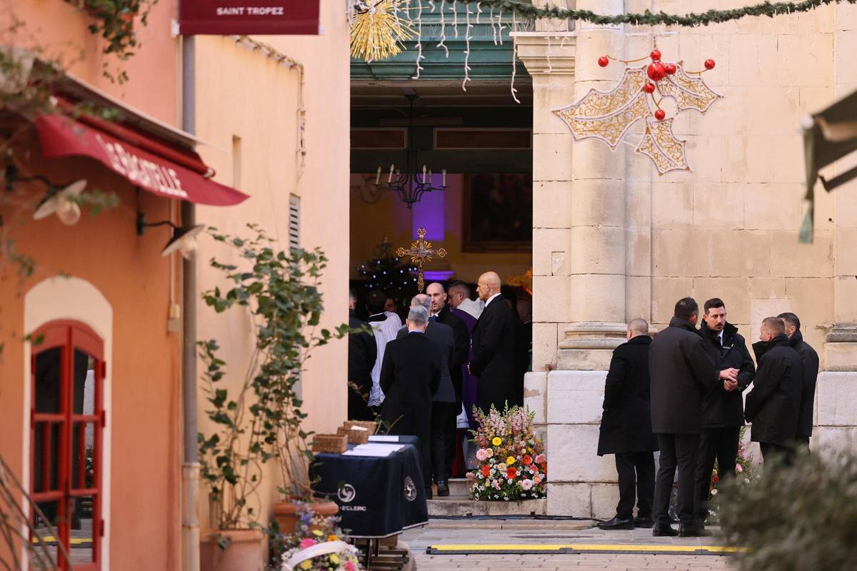 Poslední manžel Brigitte Bardot, Bernard d’Ormale, v úterý podle magazínu Paris Match za příčinu jejího úmrtí označil rakovinu. Na snímku jsou úředníci a ministranti u vchodu do kostela.