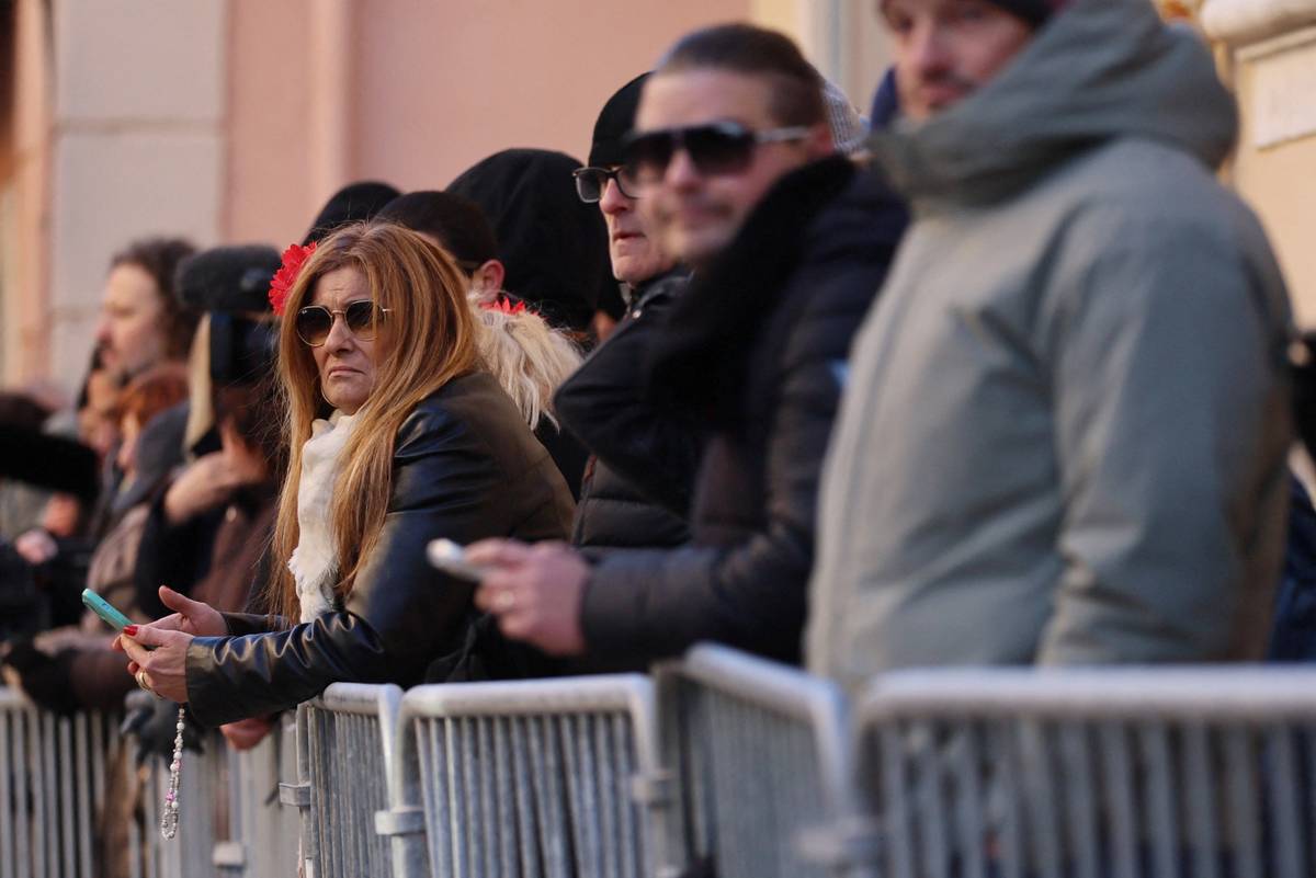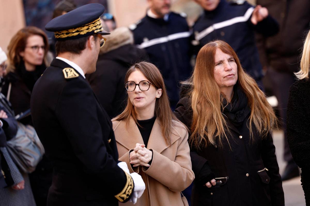 Bohoslužba je vysílána na obrazovkách v městském přístavu a na náměstích. Po obřadu bude tělo uloženo na nedalekém hřbitově, kde jsou pohřbeni také rodiče Brigitte Bardot a odkud je výhled na moře. Na snímku je uprostřed politička Aurore Bergé.