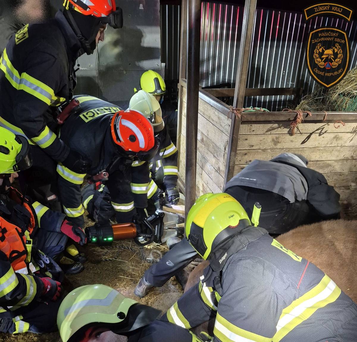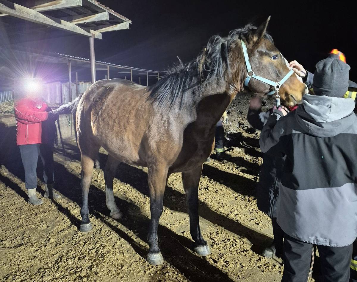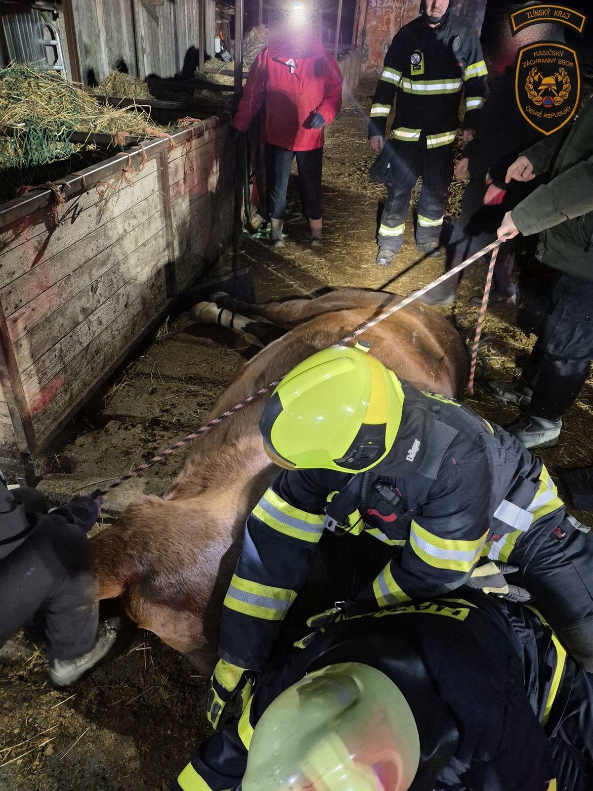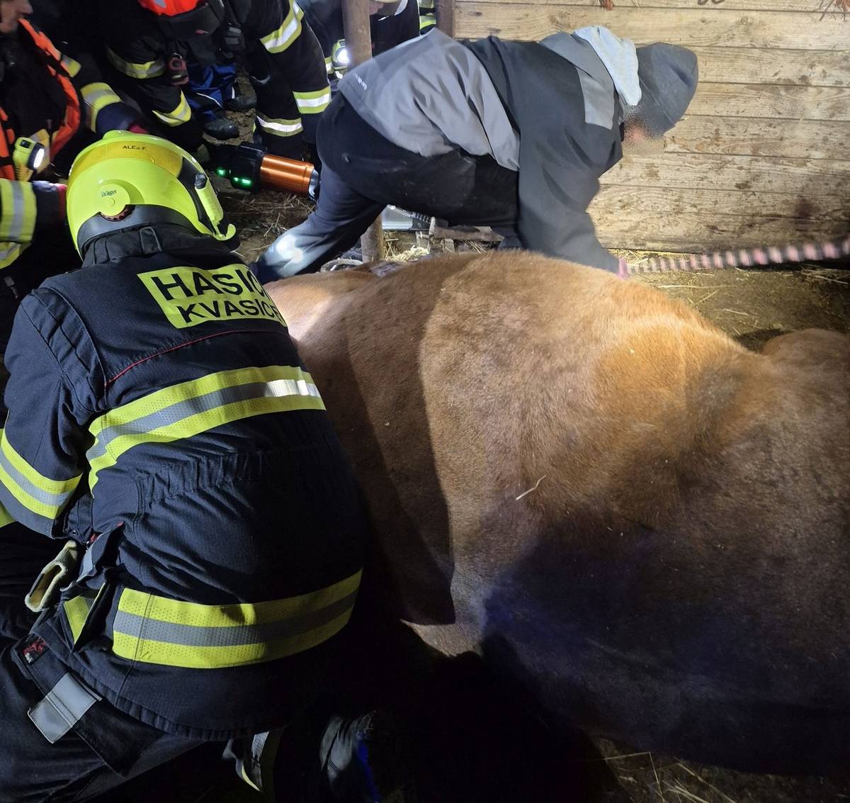 Kůň uvízl v krmelci, pomohli mu hasiči