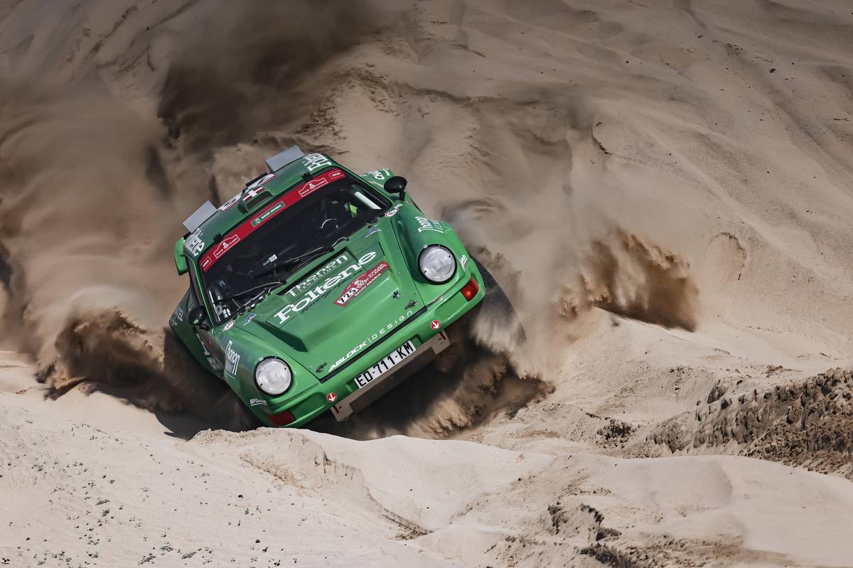 Zelené Porsche 911 přitahuje pozornost. Jede s ním 73letý Francouz Jean-Noël Gaviot-Doguillon.