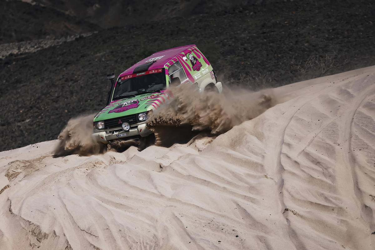 Pajero Ondřeje Klymčiwa v dakarských dunách.