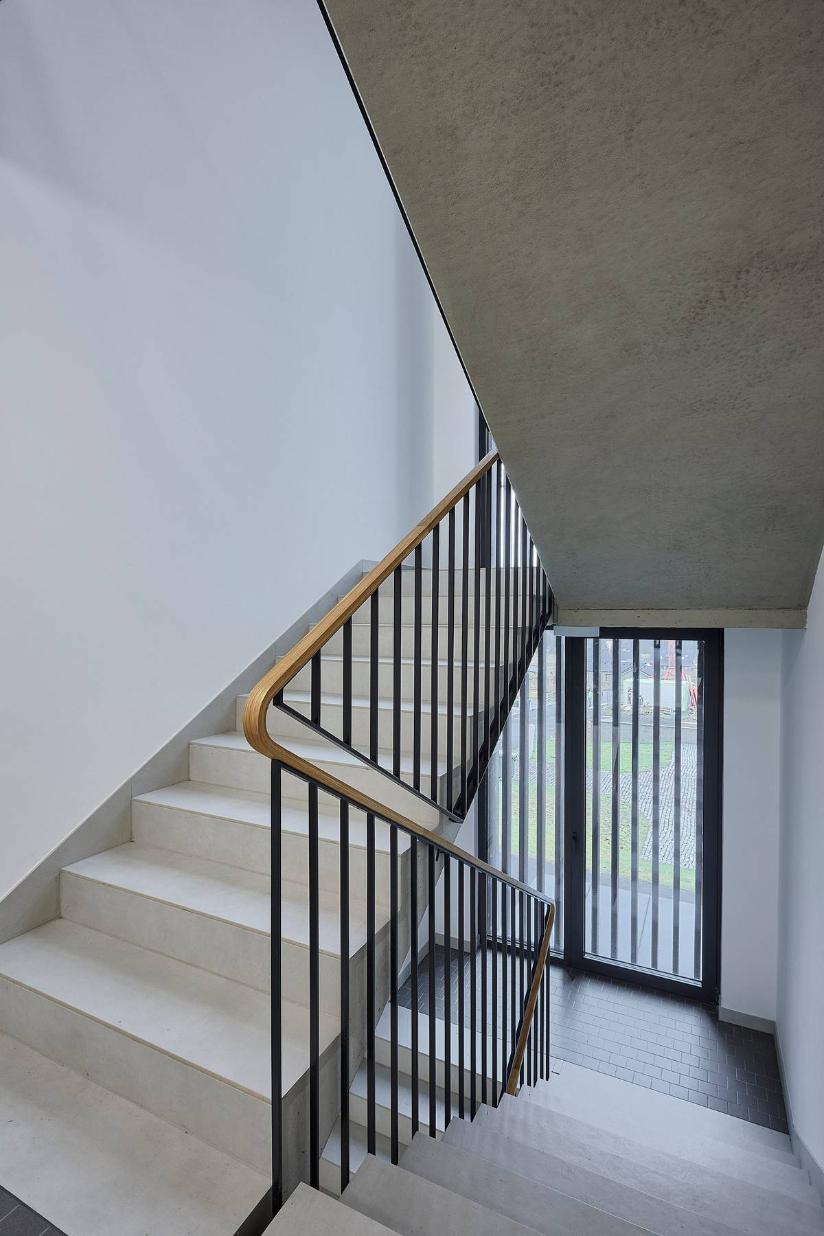 Schodiště je jednoduché a elegantní.