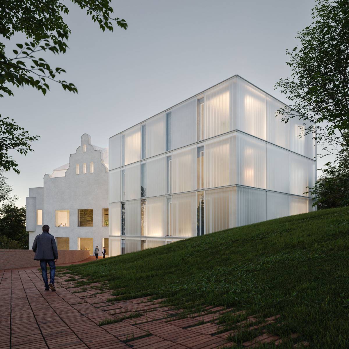 Moderní objekt u radnice se má začít stavět v roce 2028 (vizualizace).