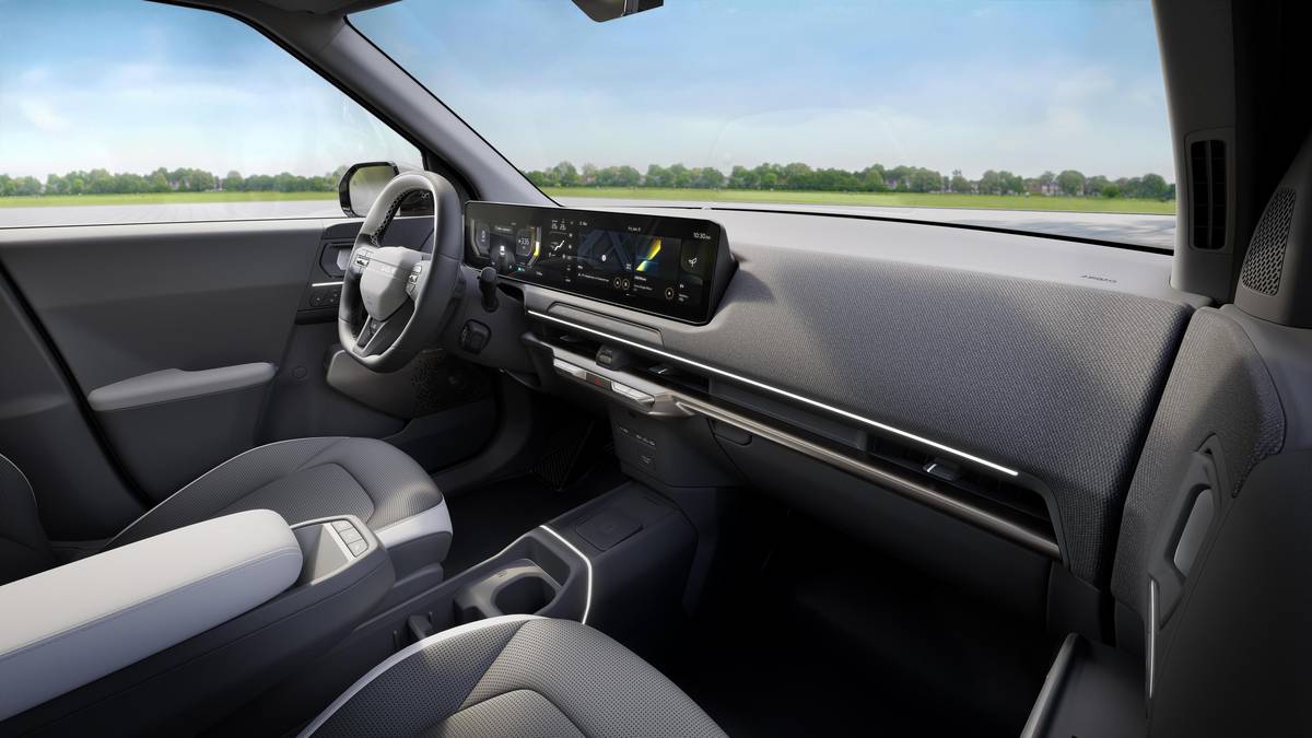 Kabině dominuje panel tvořený 12,3palcovými obrazovkami přístrojového štítu a infotainmentu, které spojuje 5palcový displej ventilace.