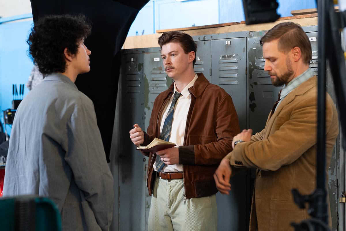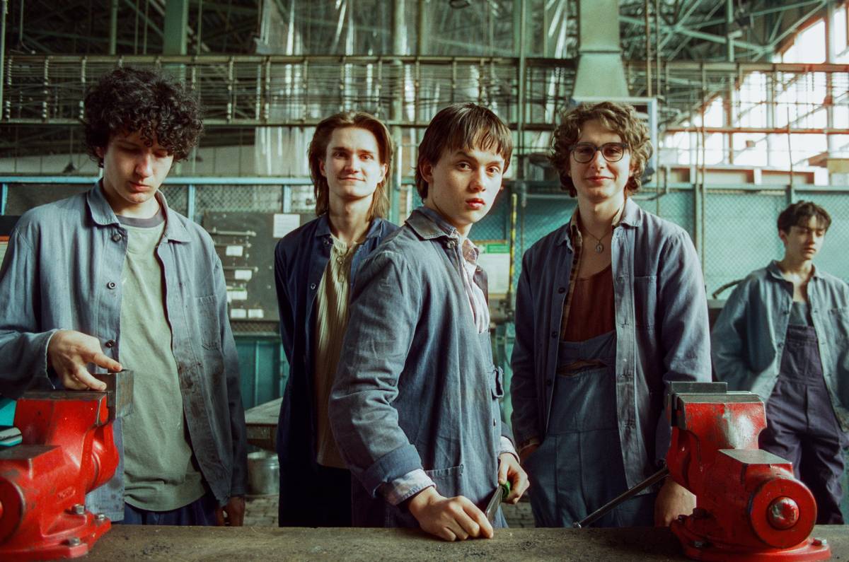 V popředí je Maxmilián Kocek jako Jiří Straka.