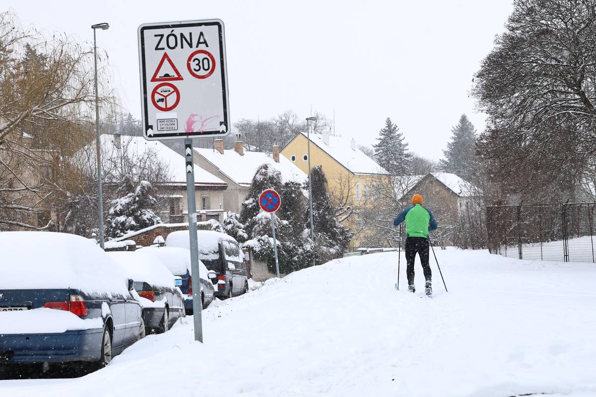 Místy bylo i 15 centimetrů čerstvého sněhu a během odpoledne ještě další připadl.