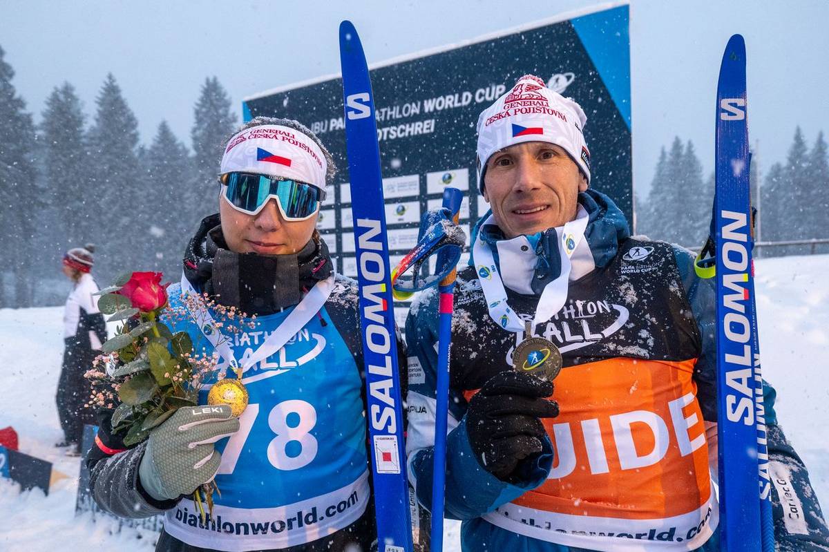 Simona Bubeníčková s trasérem Davidem Šrůtkem slaví druhou parabiatlonovou medaili