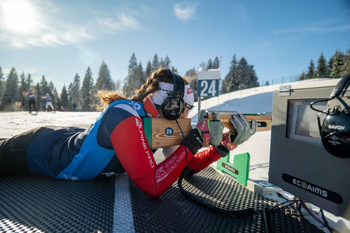 Carina Edlingerová na trati během stíhacího závodu v Nortschei
