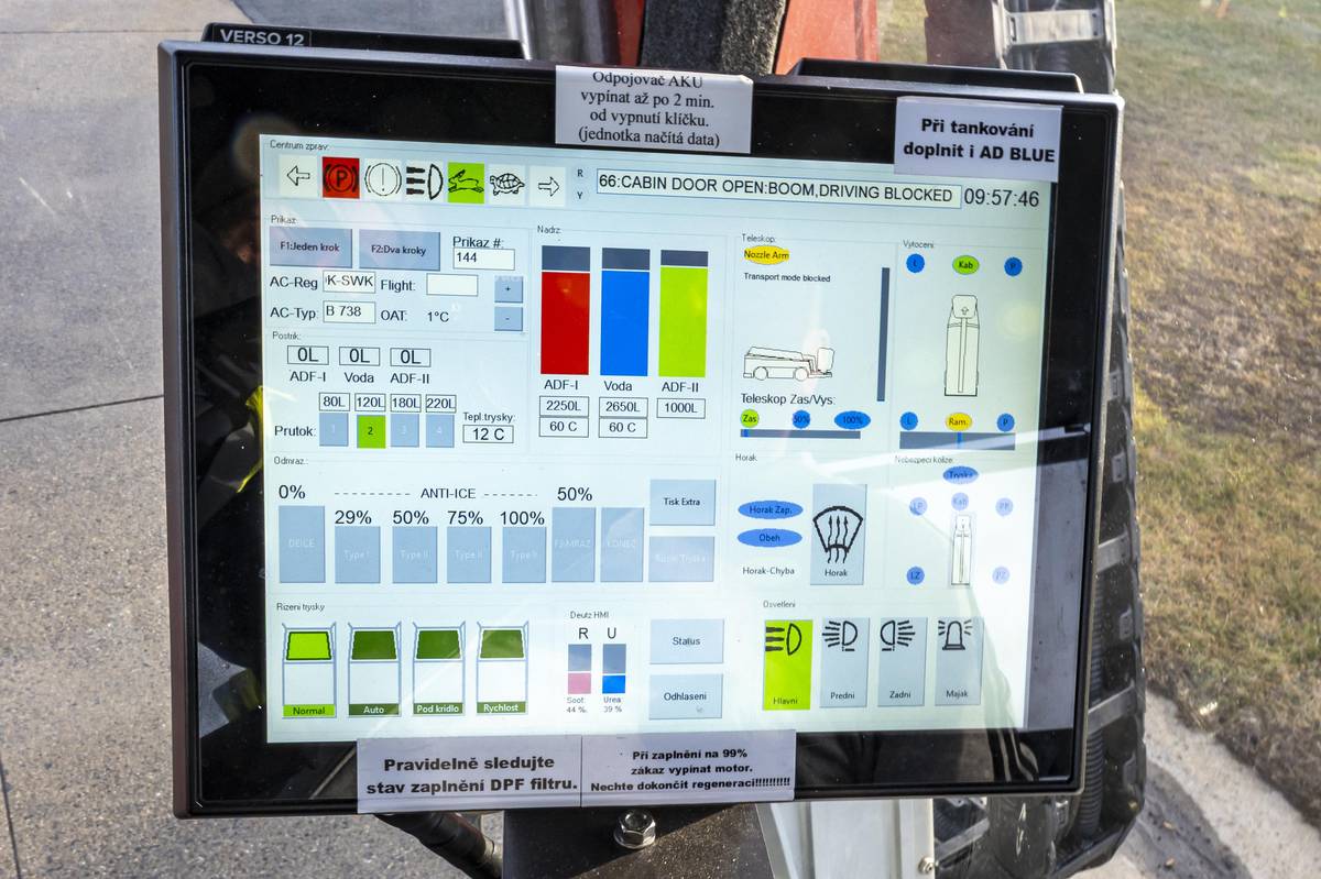 Na každém letadle pracují souběžně dvě plošiny. Každá z jedné strany letadla. Odmrazuje se hlavně, když je teplota těsně pod nulou. Při větších mrazech často není taková vlhkost a případů námrazy je míň.