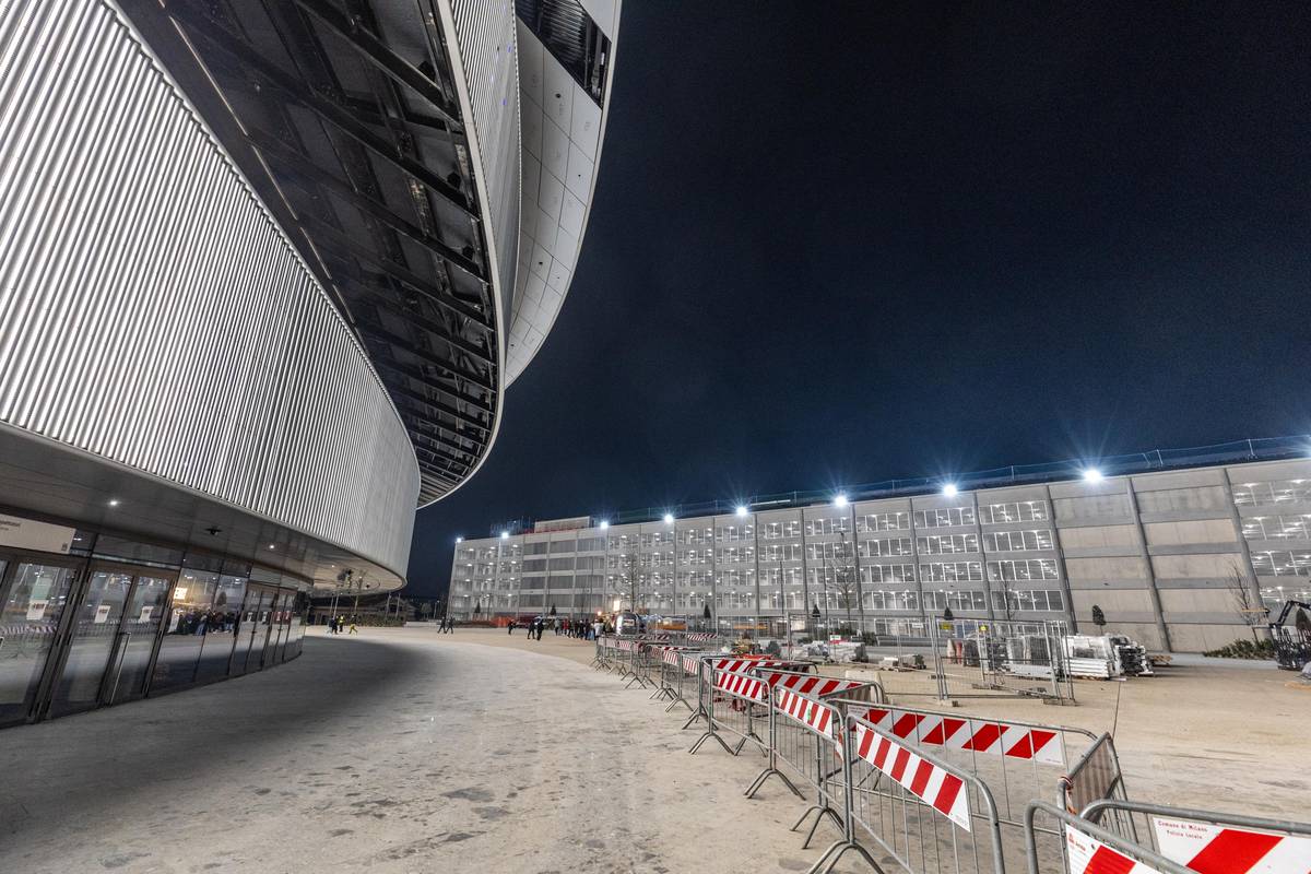 Okolí haly je pořád velké staveniště.