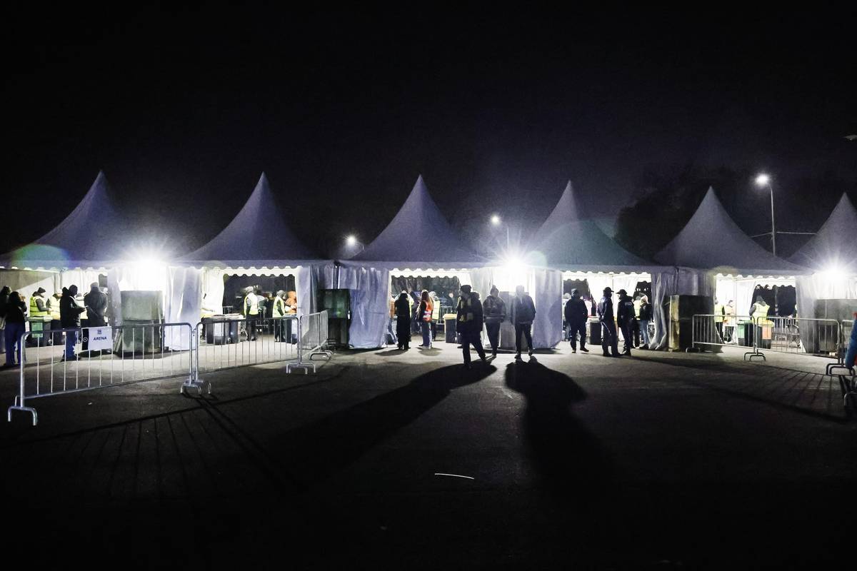 Kontrolní stanoviště před halou.