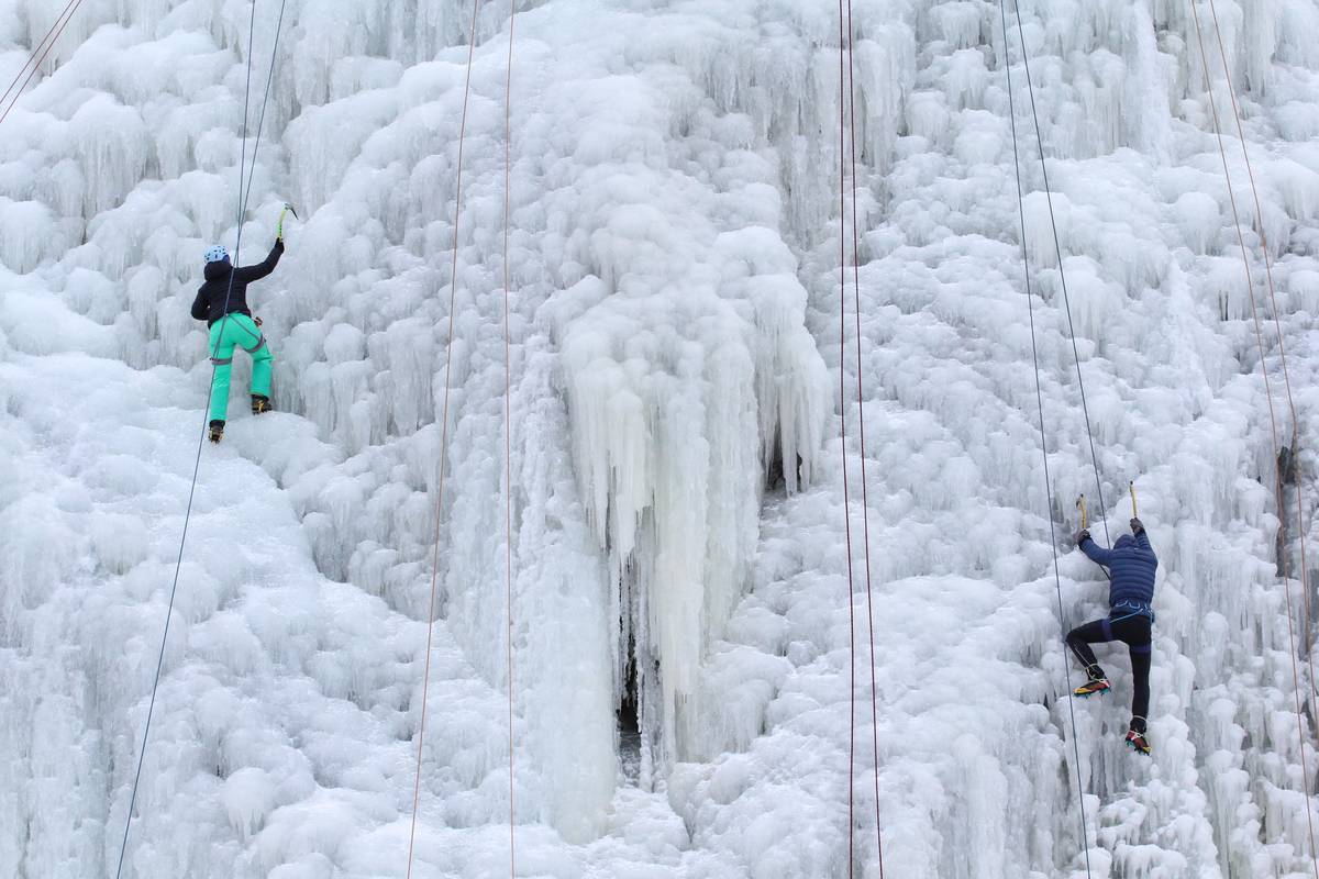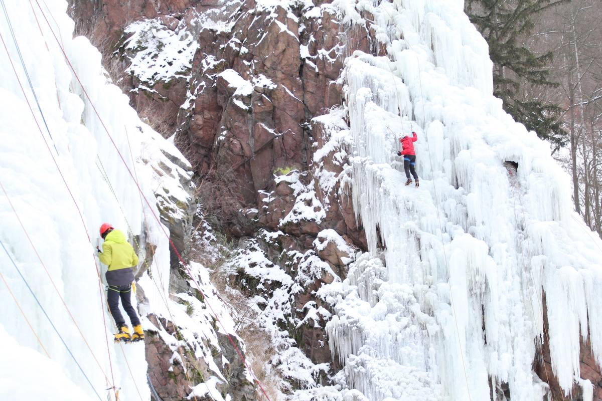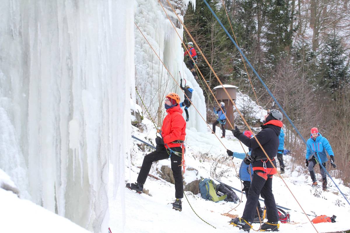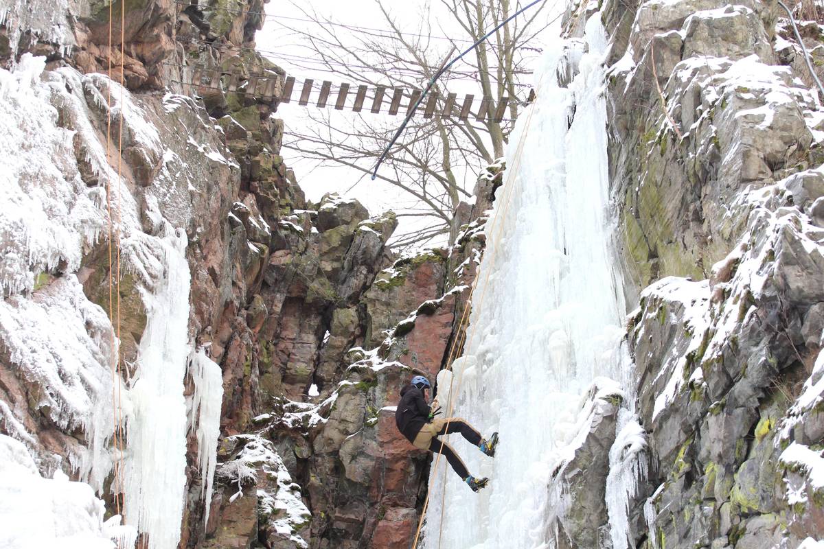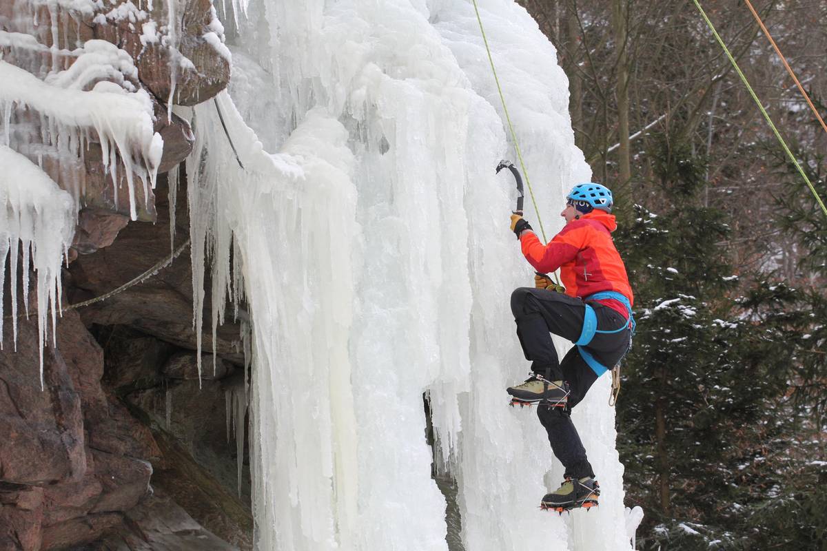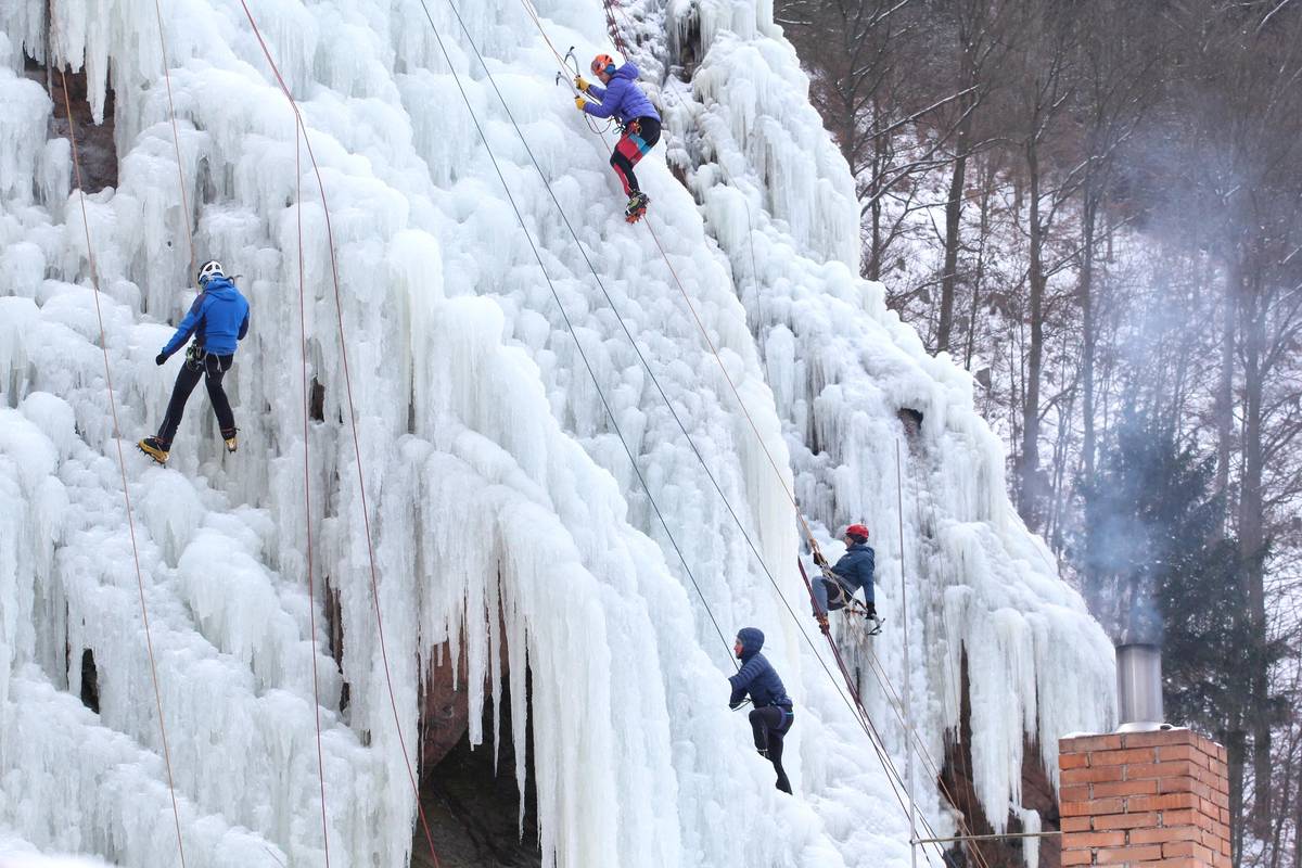 Na skalním masivu ve Víru na Žďársku využívají horolezci ledovou stěnu s cestami dlouhými až 25 metrů.