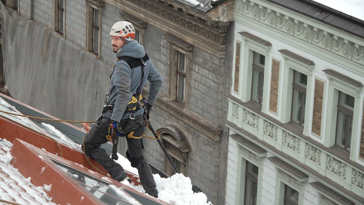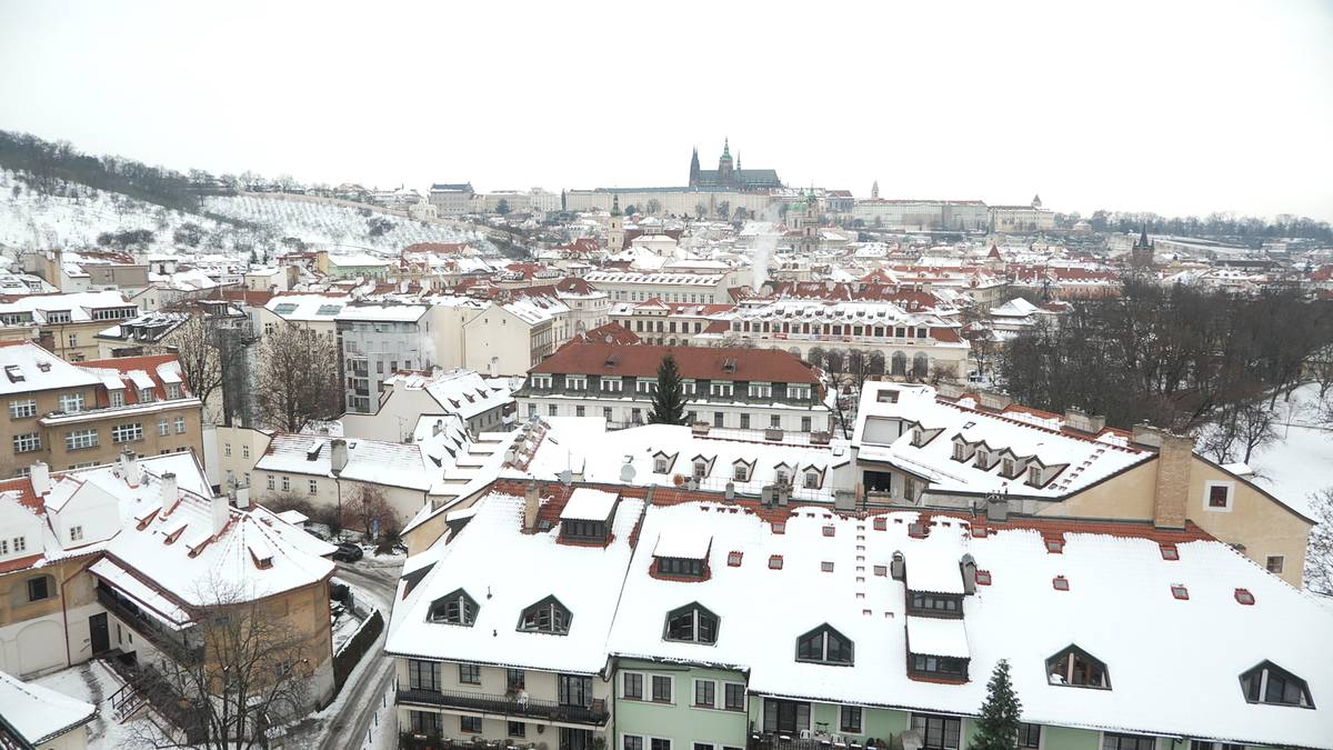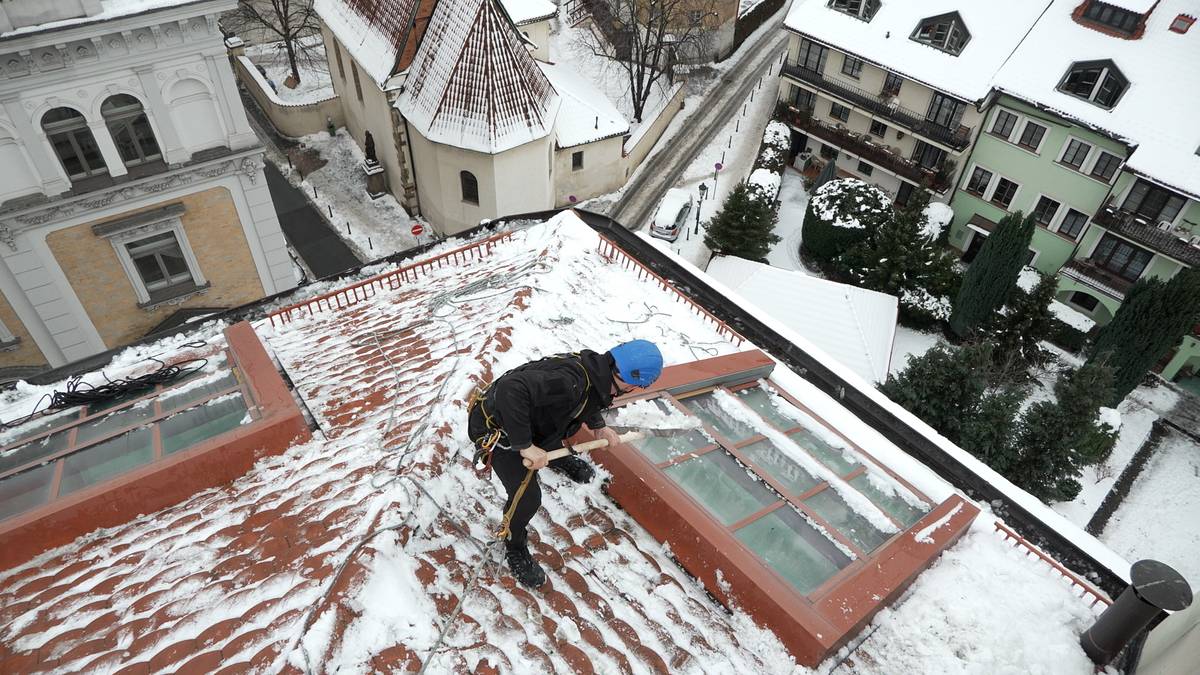Na velké části pražských střech sníh dále leží. Za bezpečnost okolo nemovitostí přitom ručí sami majitelé.