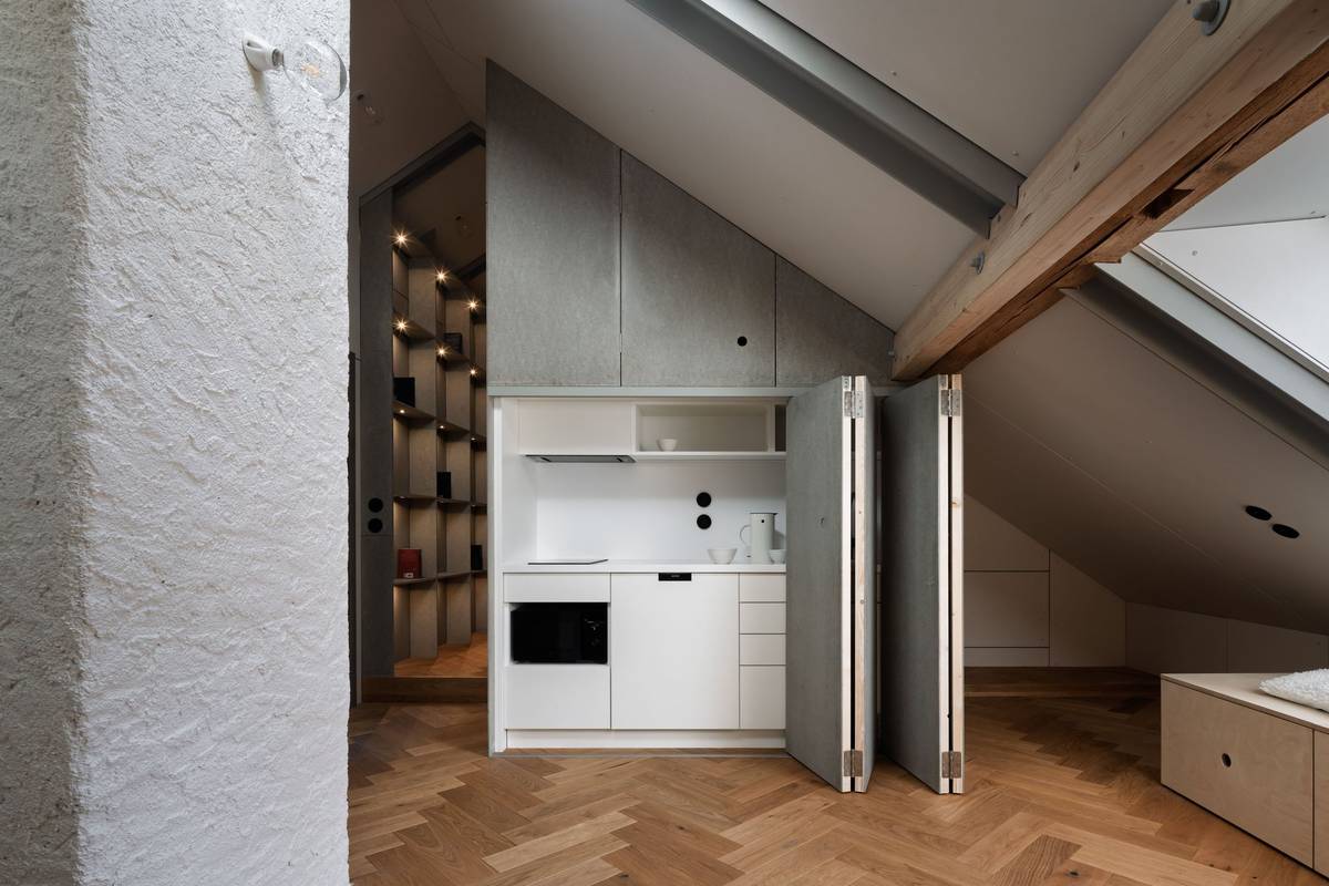 V podkroví se nachází uzavíratelná kuchyňka.