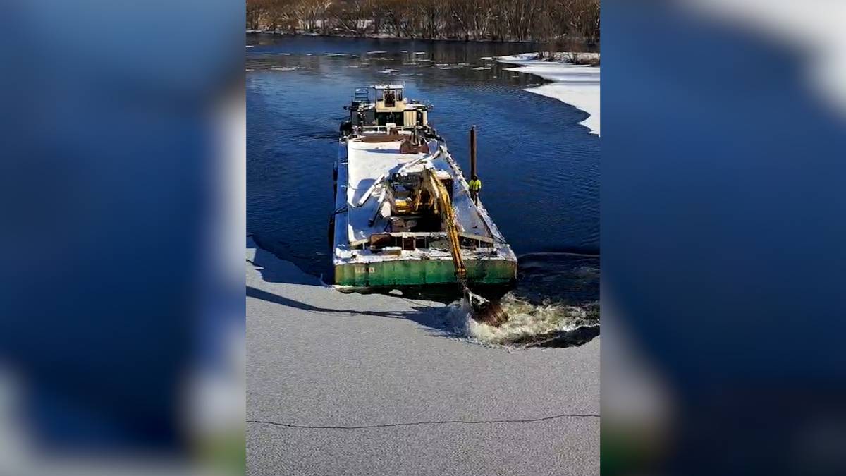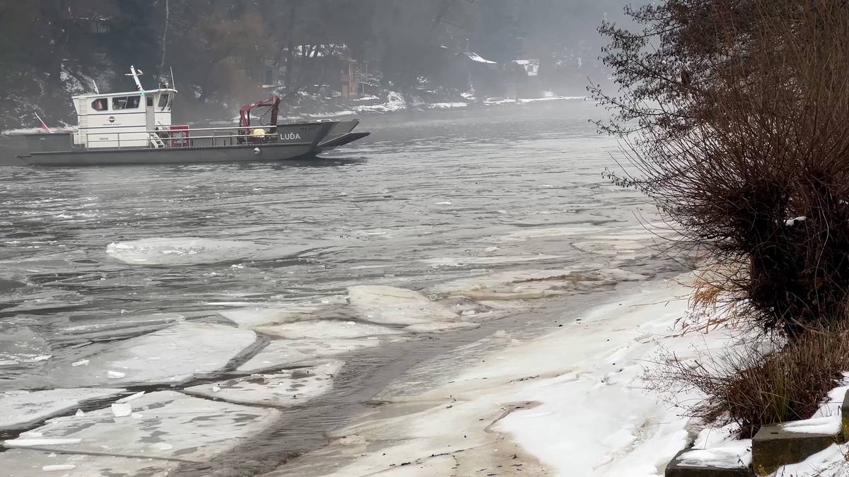 Bourání ledu na řece Berounce