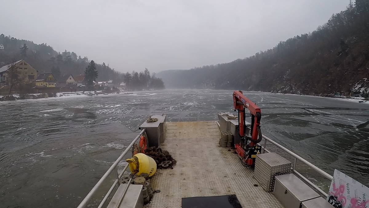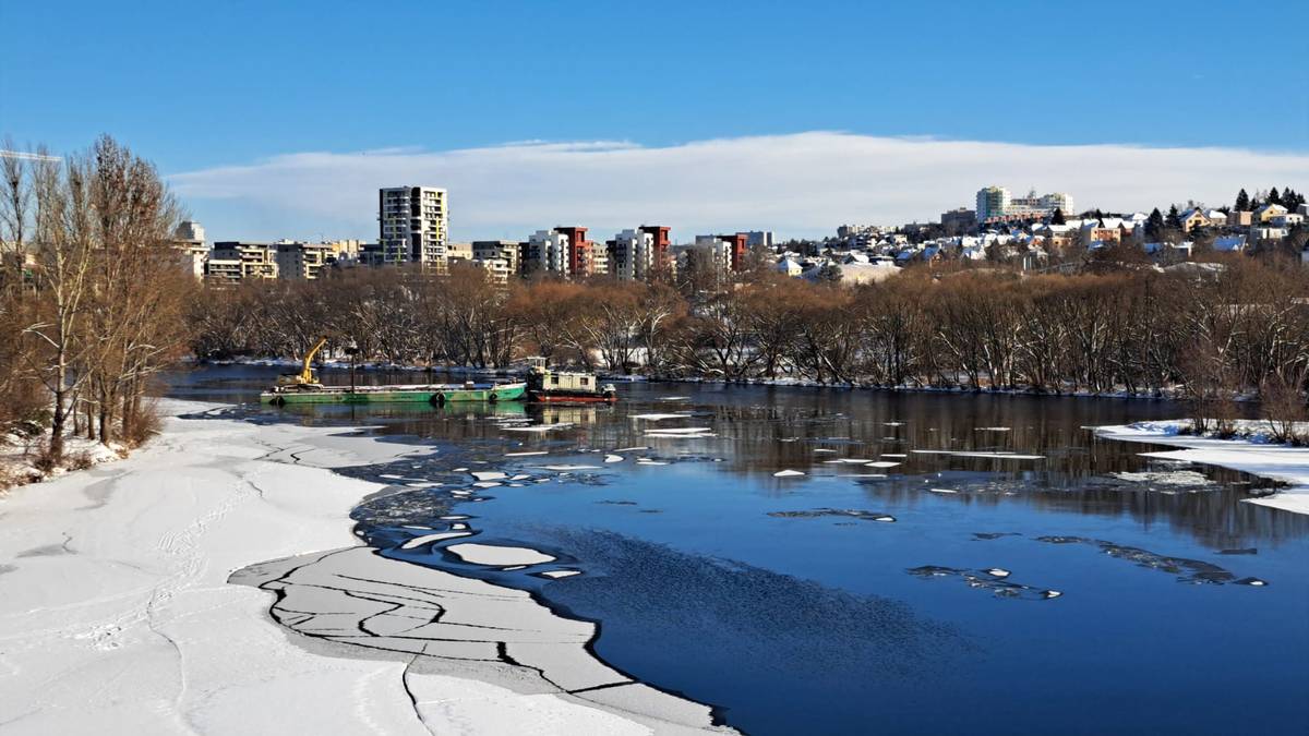 Zamrzající soutok Berounky a Vltavy