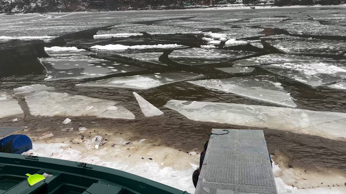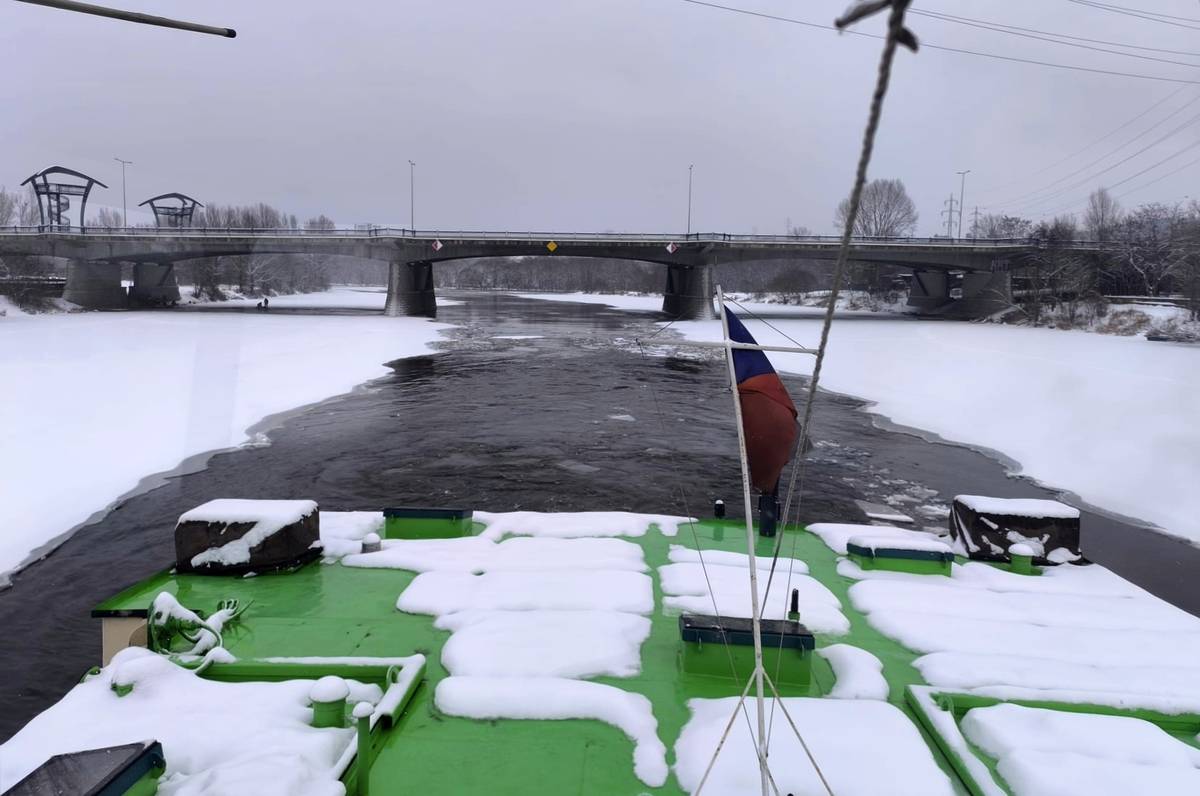 Bourání ledové celiny na Berounce