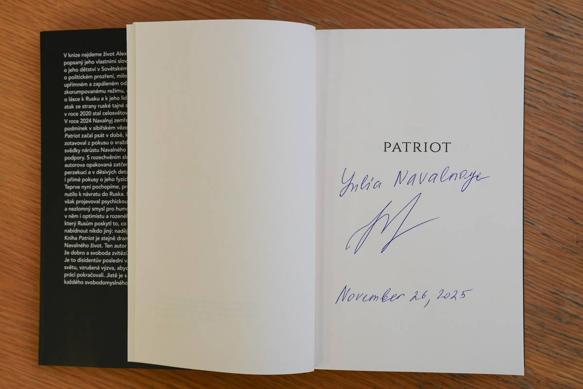 Podpis manželky Julie Navalné v knize o jejím manželovi