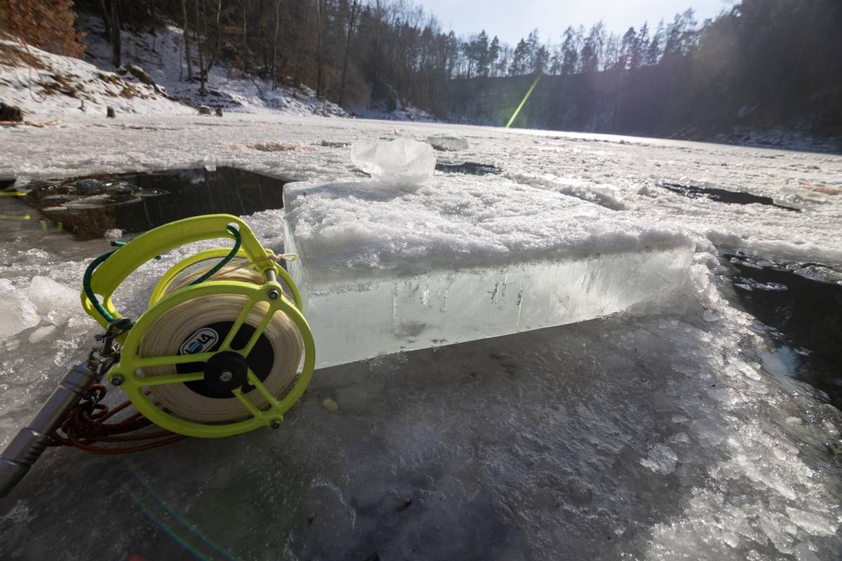 Muž chtěl na Brněnsku podplavat pod ledem a už se nevynořil. Policie na místě tragédie.