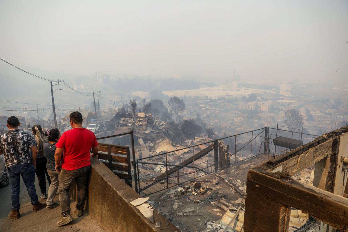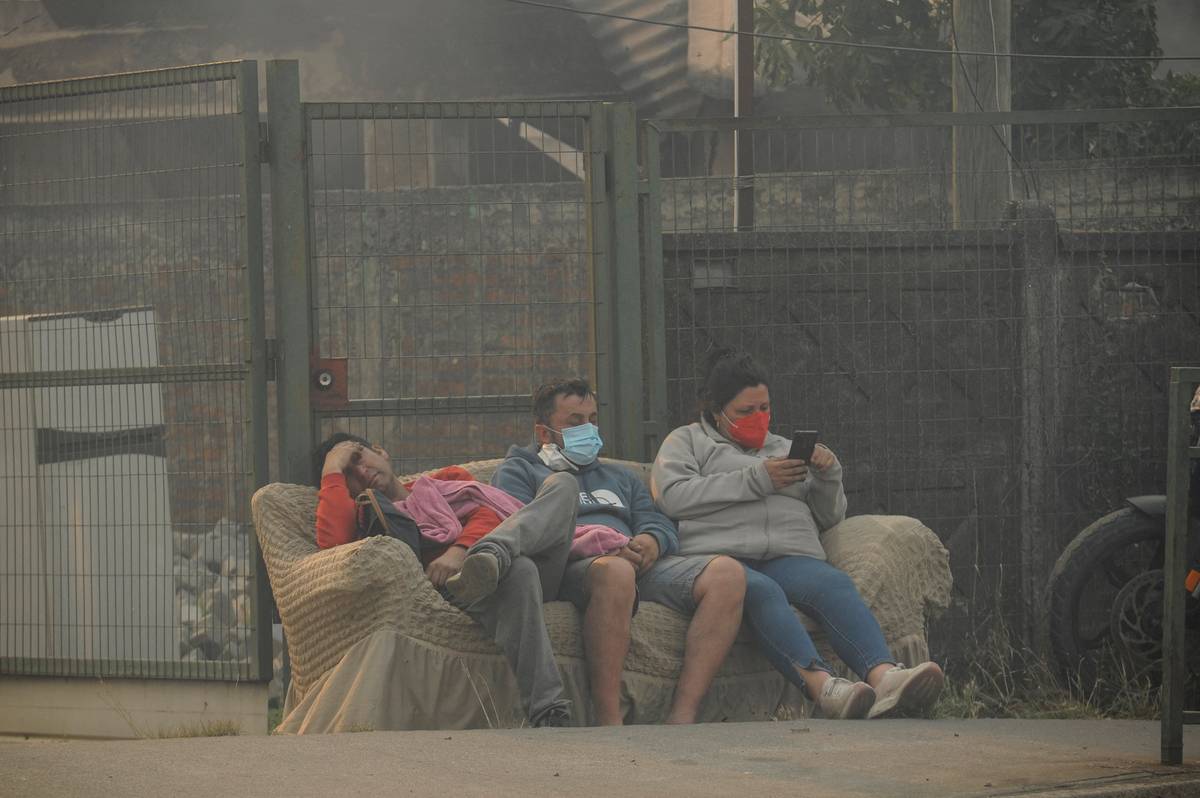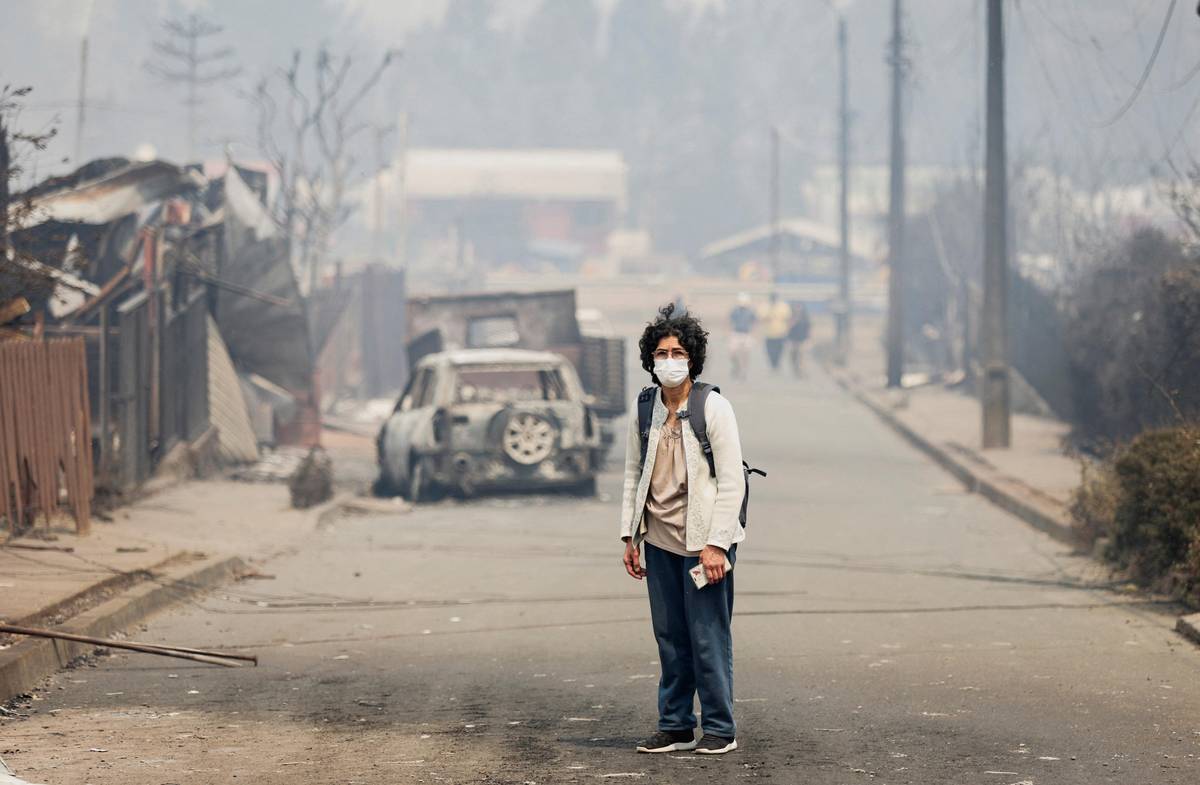 Lidé po návratu ke svým domům po lesním požáru v Concepciónu.