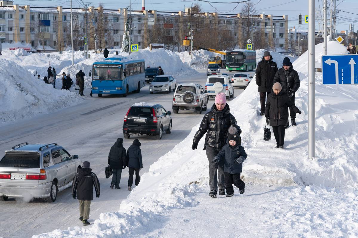 Vzhledem ke „sněžnému kolapsu“ přestaly v Petropavlovsku-Kamčatském načas jezdit autobusy městské dopravy. Lidi převážely vězeňské vozy ruské gardy a speciální autobusy určené pro pracovníky ve směnném provozu.