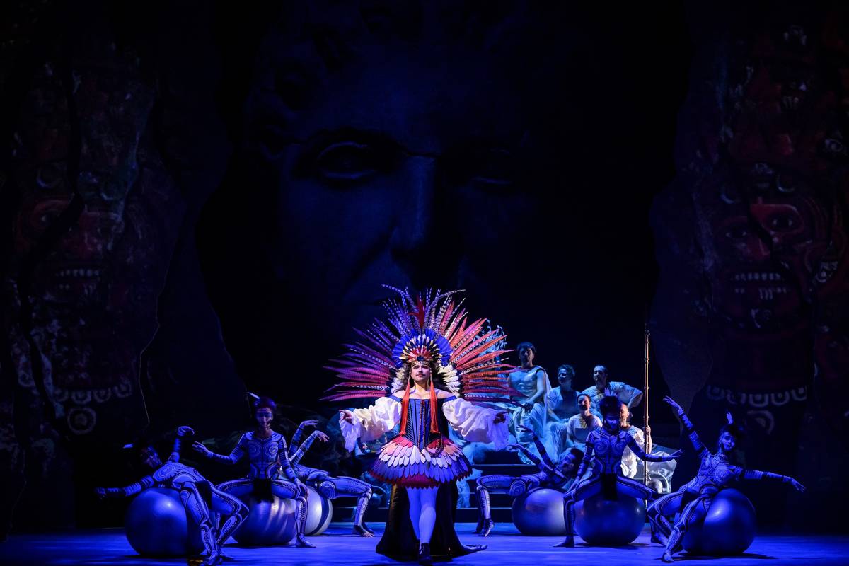 Na fotografii z nové inscenace opery Dido a Aeneas, kterou lze vidět ve Stavovském divadle, jsou Markéta Cukrová jako Dido a Lukáš Bařák coby Aeneas.