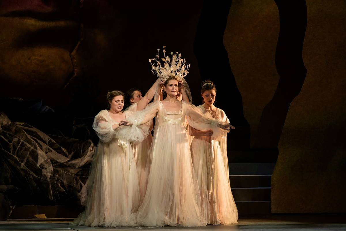 Markéta Cukrová v roli Didony, Jekatěrina Krovatěva jako Belinda a členové souboru Collegium Vocale 1704.