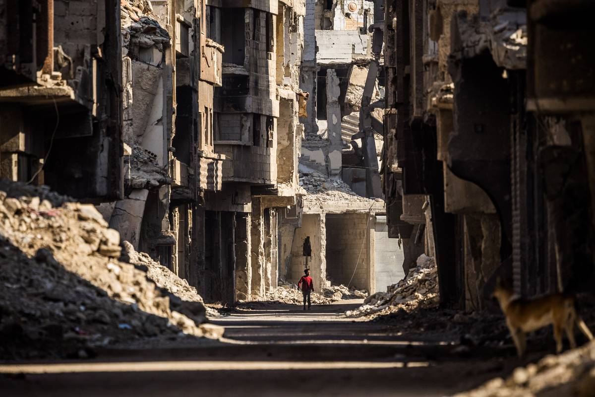 Uprchlický tábor pro Palestince Jarmúk na předměstí Damašku. Před syrskou občanskou válkou zde žil asi milion lidí, po ní jen čtyři nebo pět desítek tisíc.