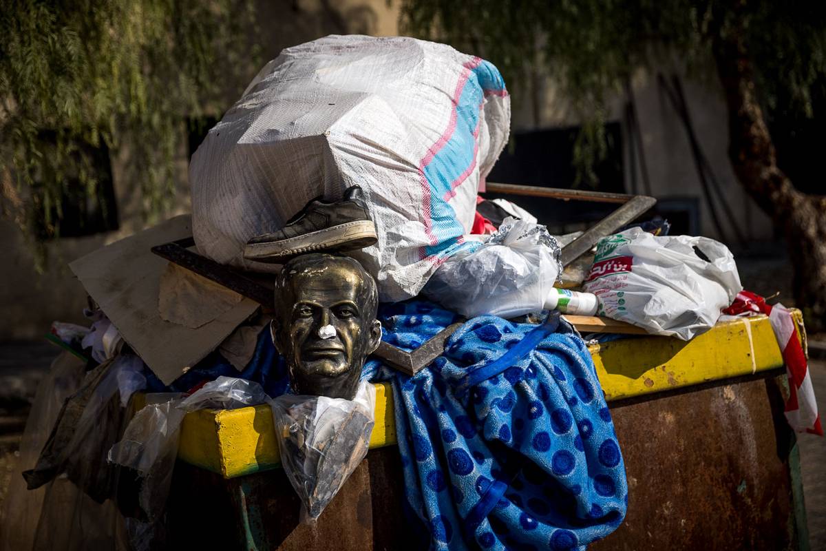 Busta Háfize Asada, bývalého diktátora a otce svrženého Bašára Asada, v kontejneru s odpadky nedaleko tzv. usmiřovacího centra, kde se registrovali bývalí zaměstnanci bezpečnostních složek Asadova režimu. Pokud neměli krev na rukou, mohli se očistit a zařadit do společnosti.