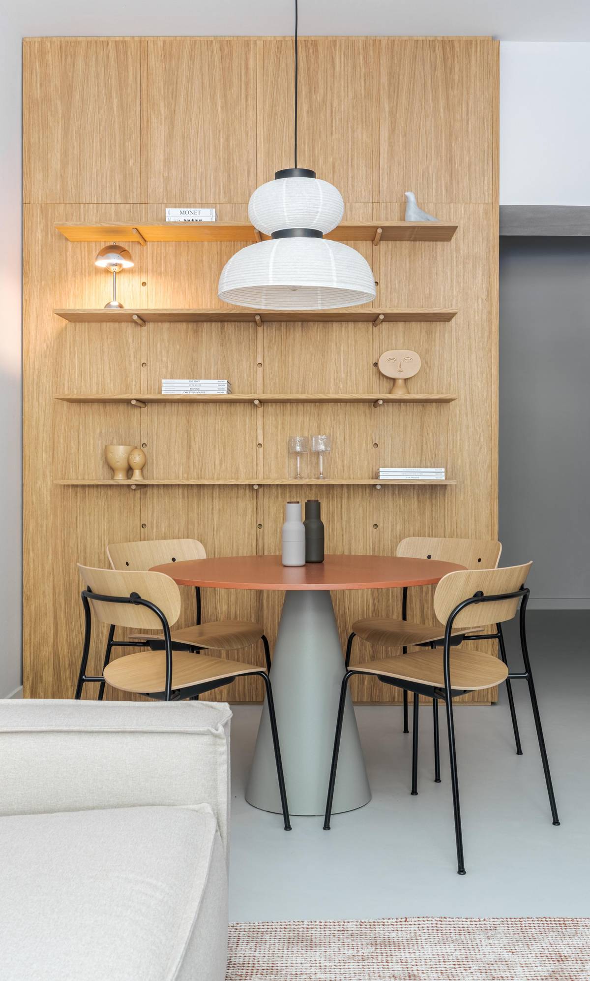 Vestavěné skříně různého typu a velikosti kopírují stěny téměř celého bytu.