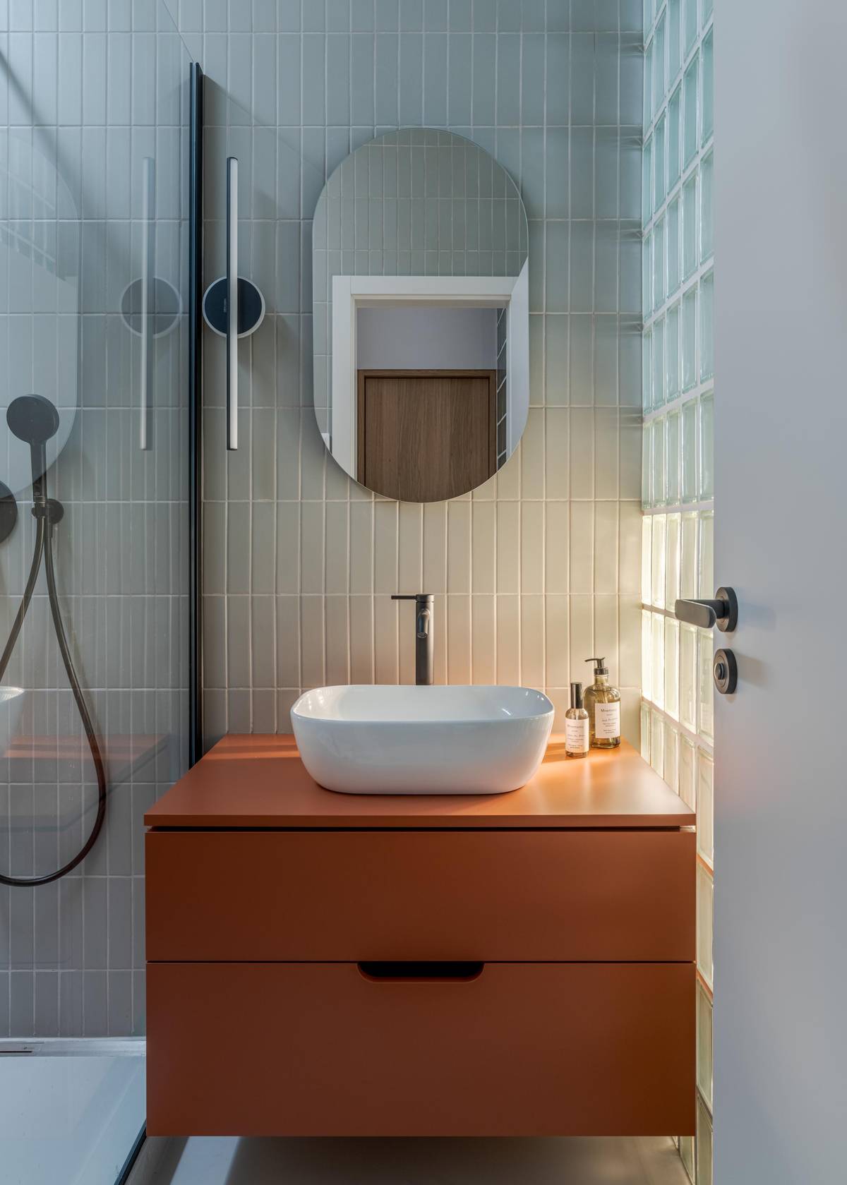 Tlumené osvětlení přicházející přes luxfery ocení obyvatelé bytu zejména při ranním vstávání i rutině před spaním.