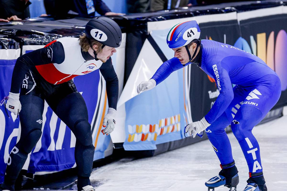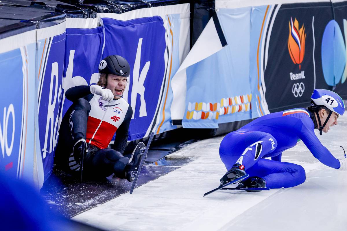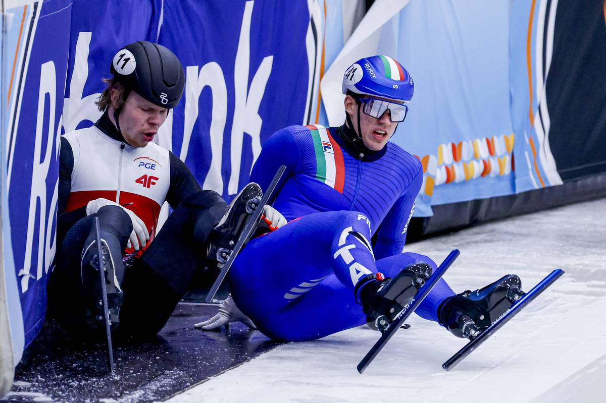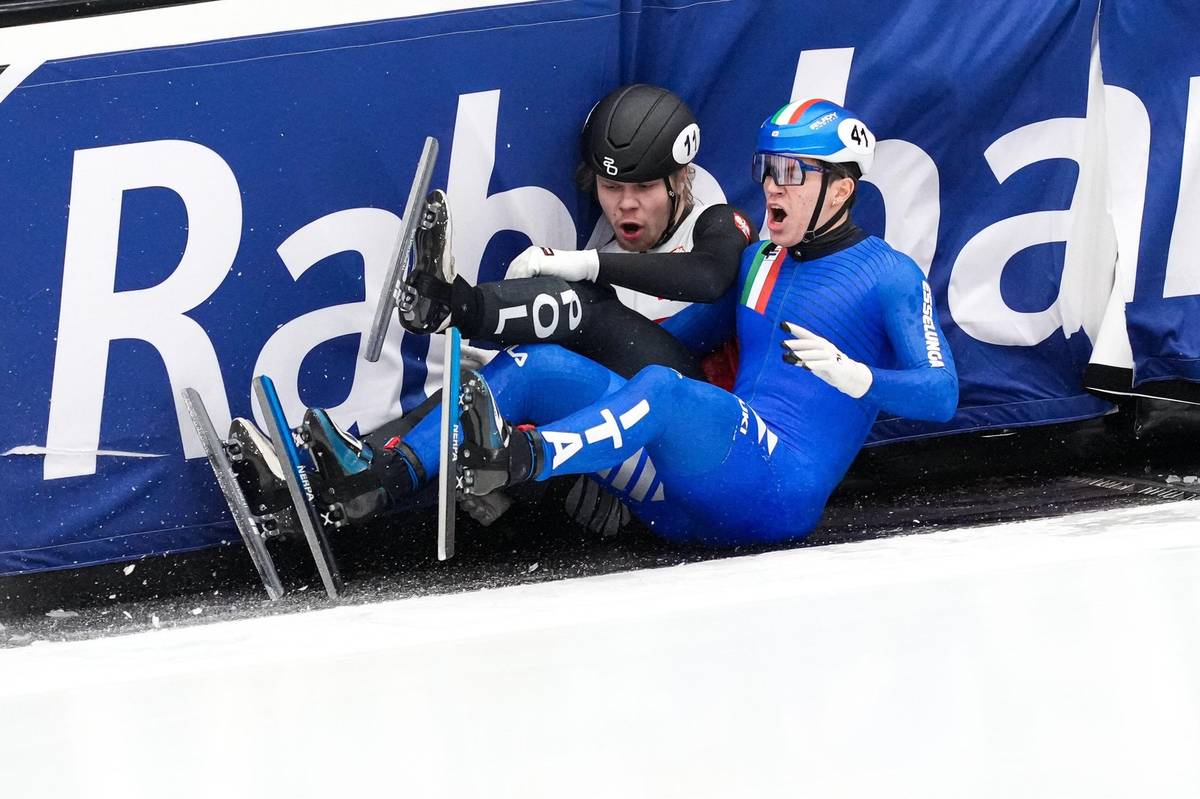 Drsné zranění italského rychlobruslaře Lorenza Previtaliho.