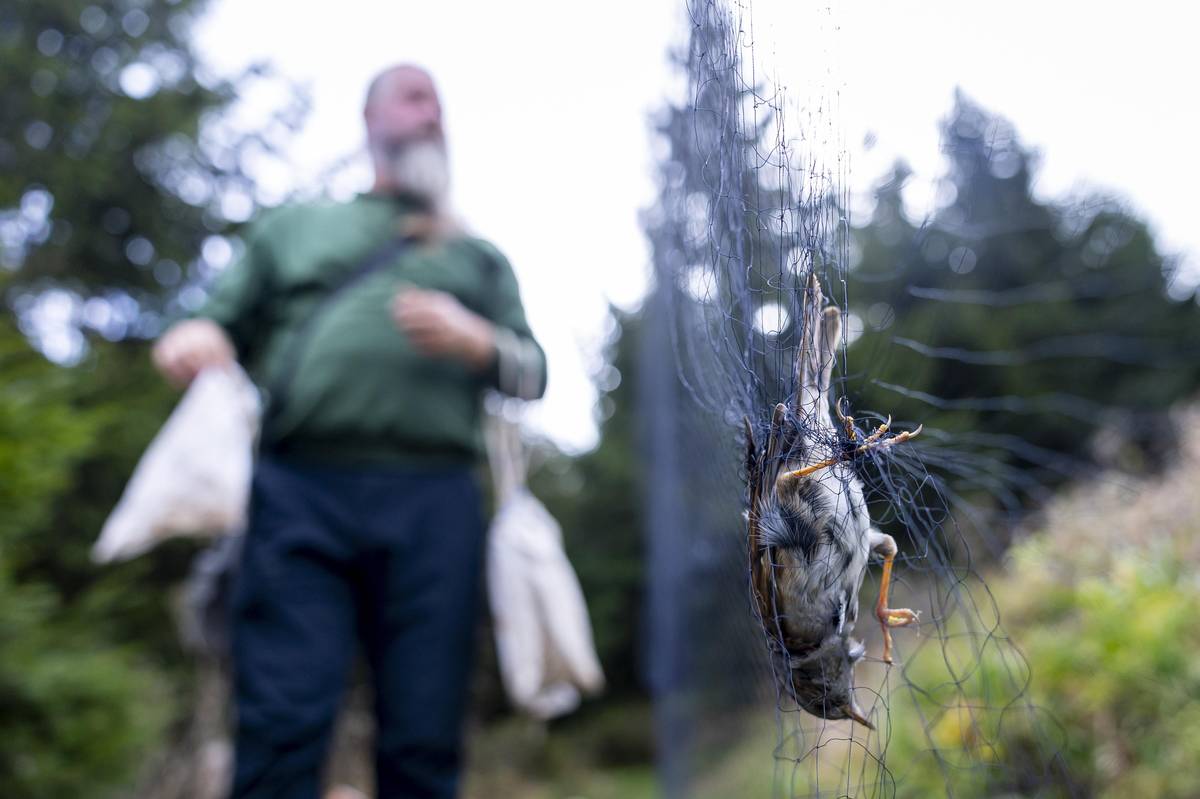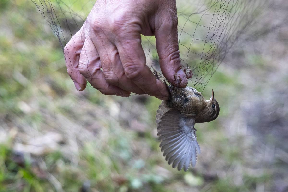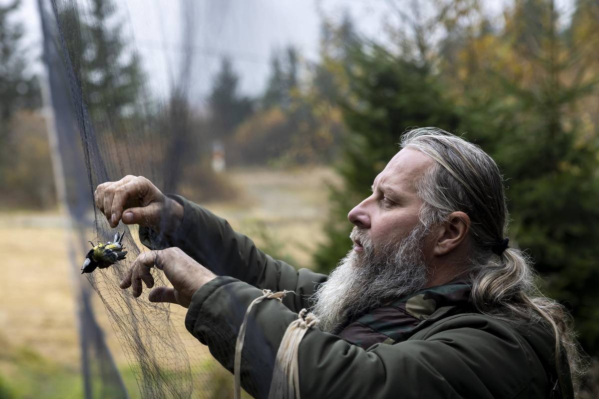 Ornitologové odchytávají na Červenohorském sedle v Jeseníkách migrující ptáky a zaznamenávají tím tak jejich pobyt a druhovou četnost.