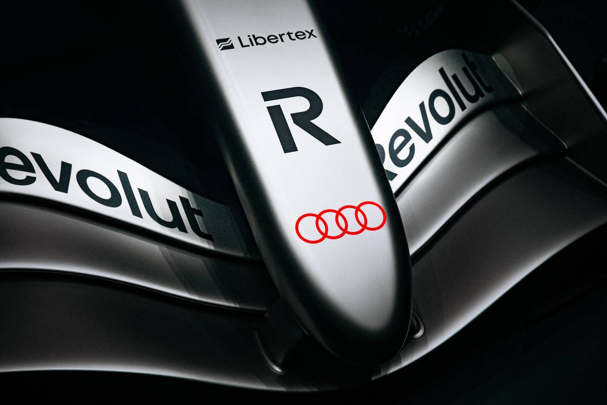Závodní speciál týmu Audi Revolut F1 sází na elegantní kombinaci titanové šedé, karbonově černé a červených detailů.