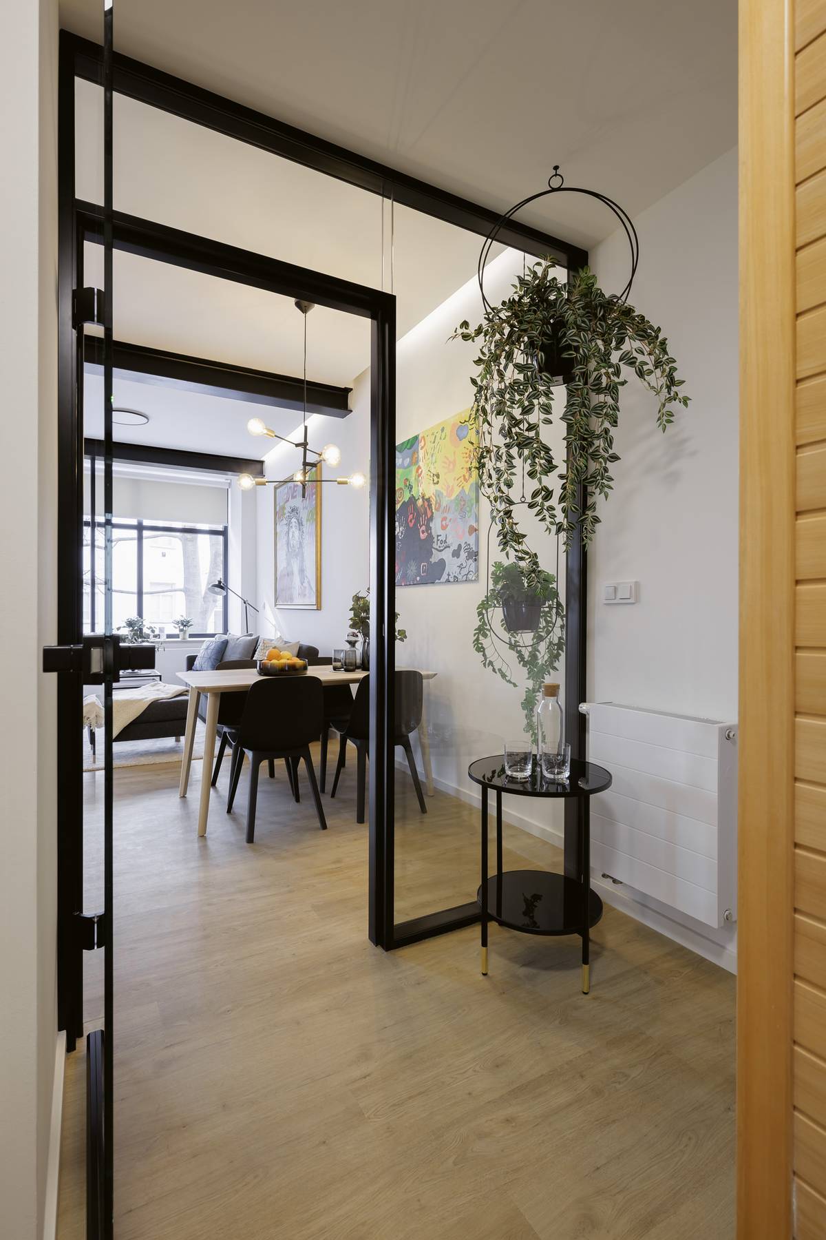 Interiér oživují nejenom barevné obrazy, ale i zelené rostliny.