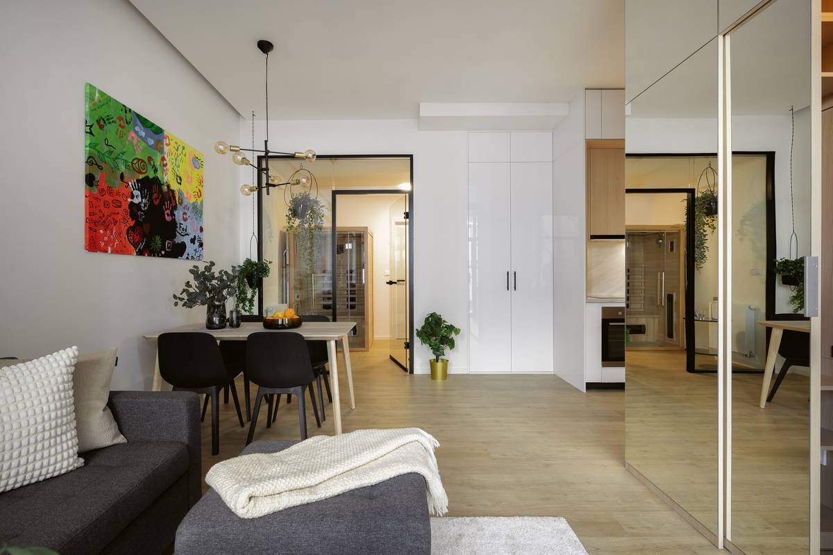 Díky skleněné příčce prostupuje do středové místnosti spousta denního světla.