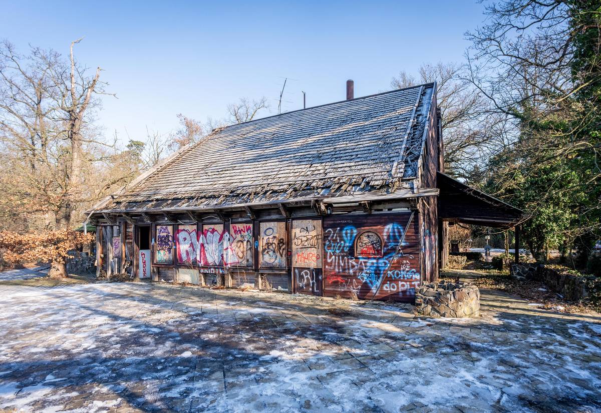 Opuštěná restaurace Česká chalupa v Průhonicích.