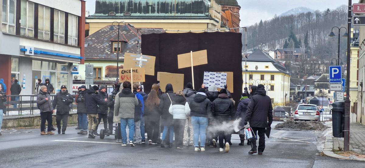 V Novém Boru se natáčely scény z demostrace.