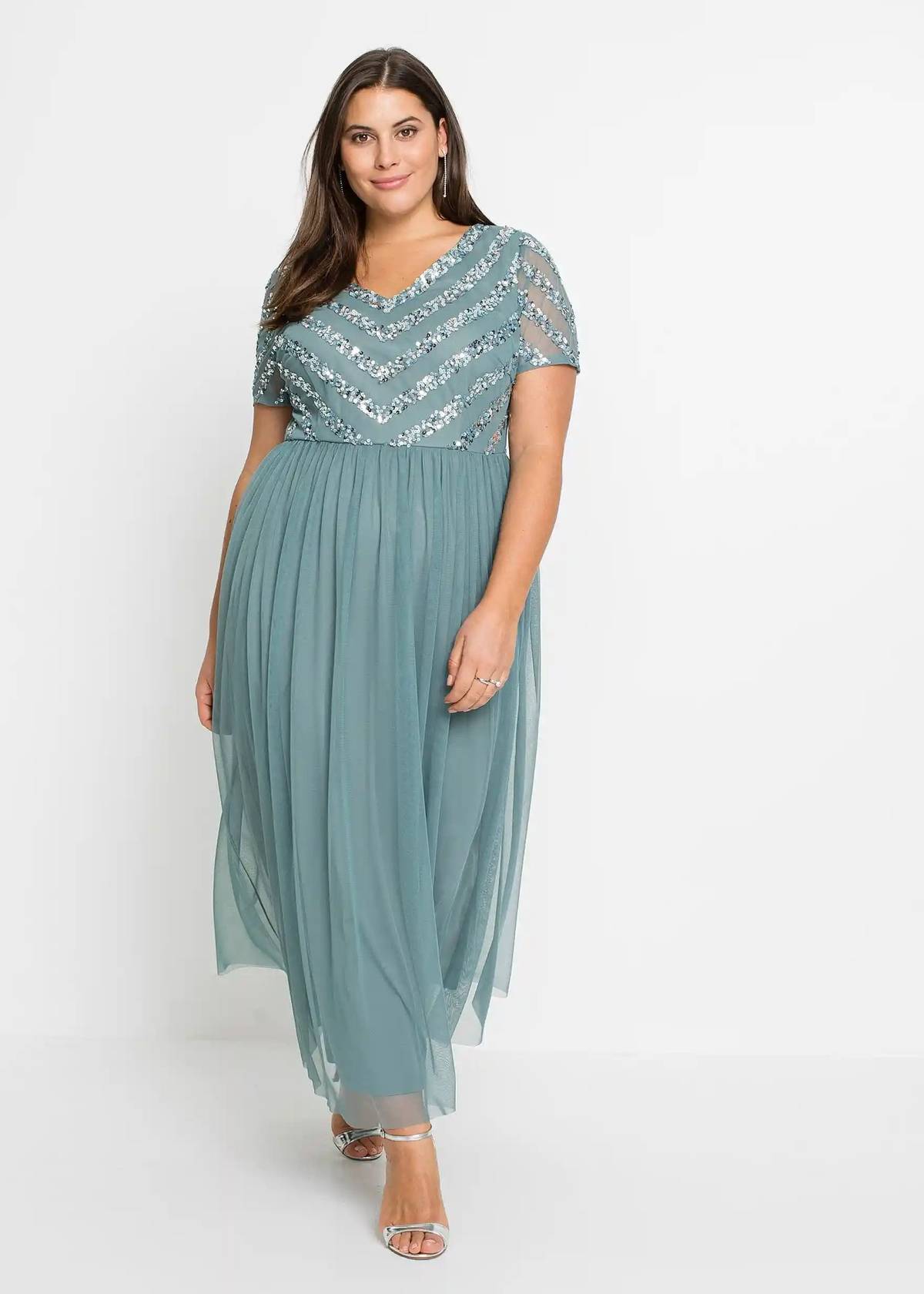 Maxi šaty s výšivkou a flitry, Bonprix, 1399 Kč