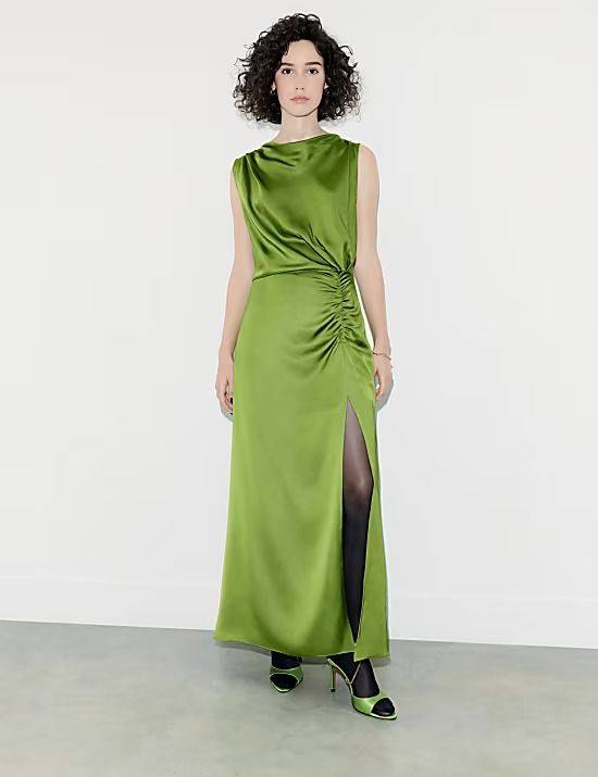 Saténové šaty s řasením, Marks & Spencer, 2699 Kč
