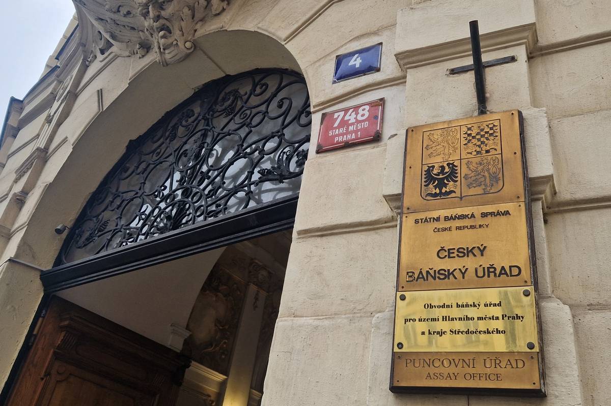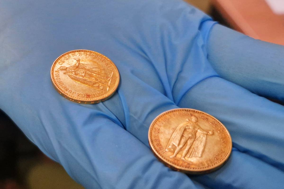 Královéhradečtí archeologové přebírají na Puncovním úřadě zlatý poklad.