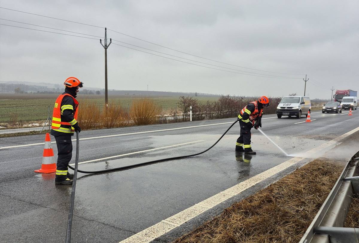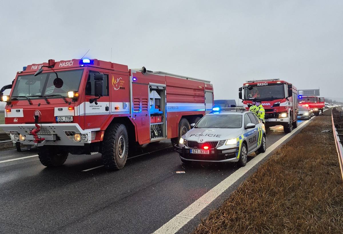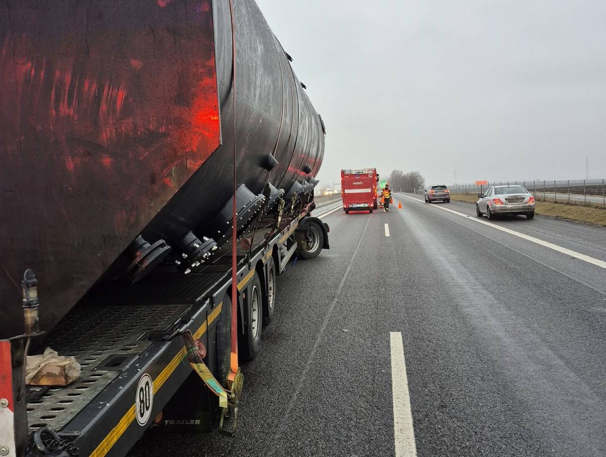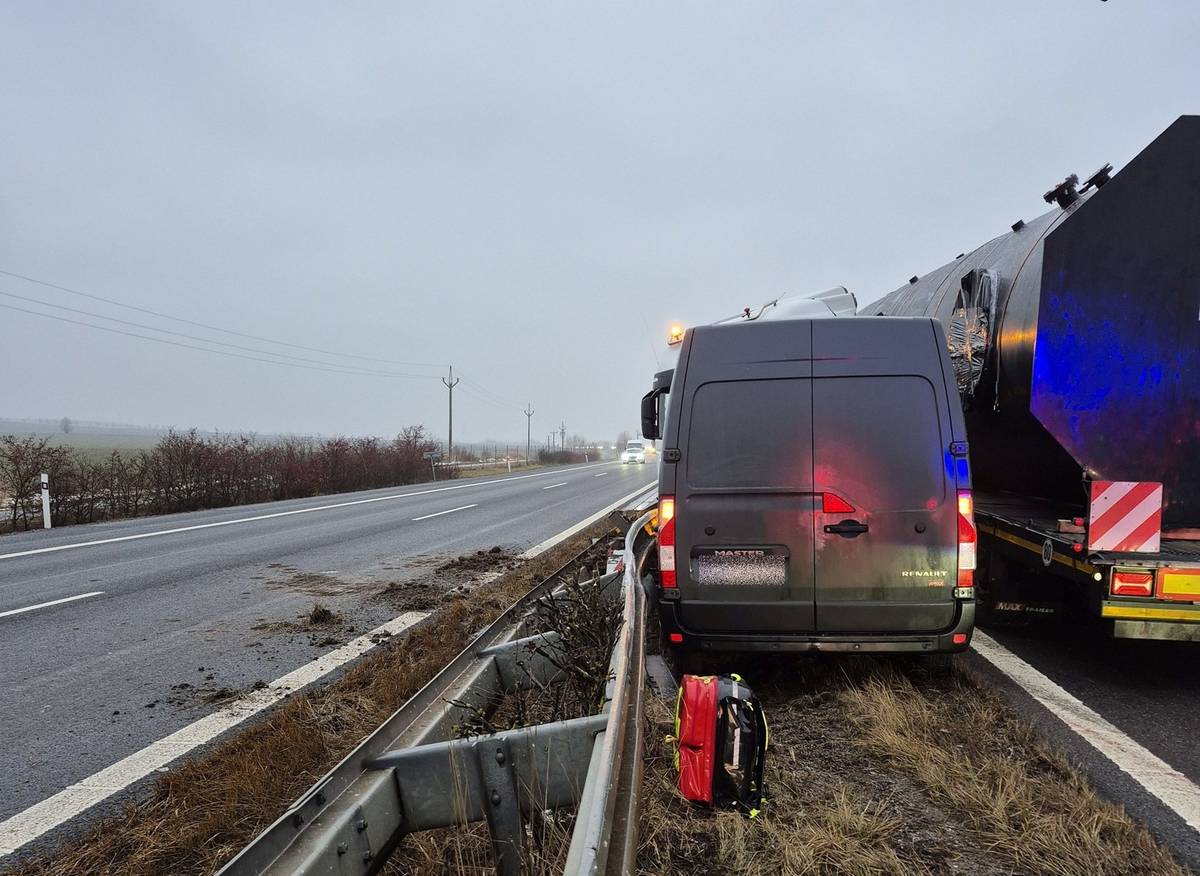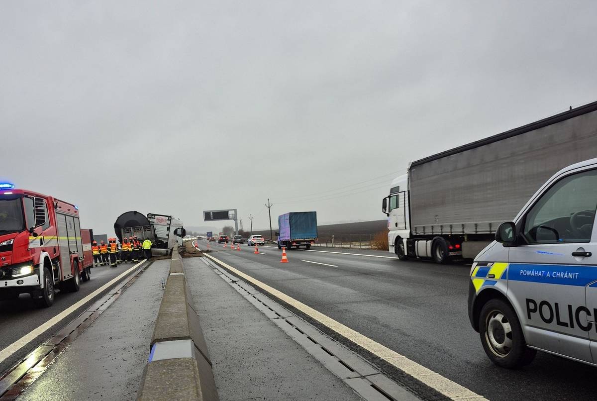 Nehoda kamionu a dodávky na dálnici u Bezměrova na Kroměřížsku
