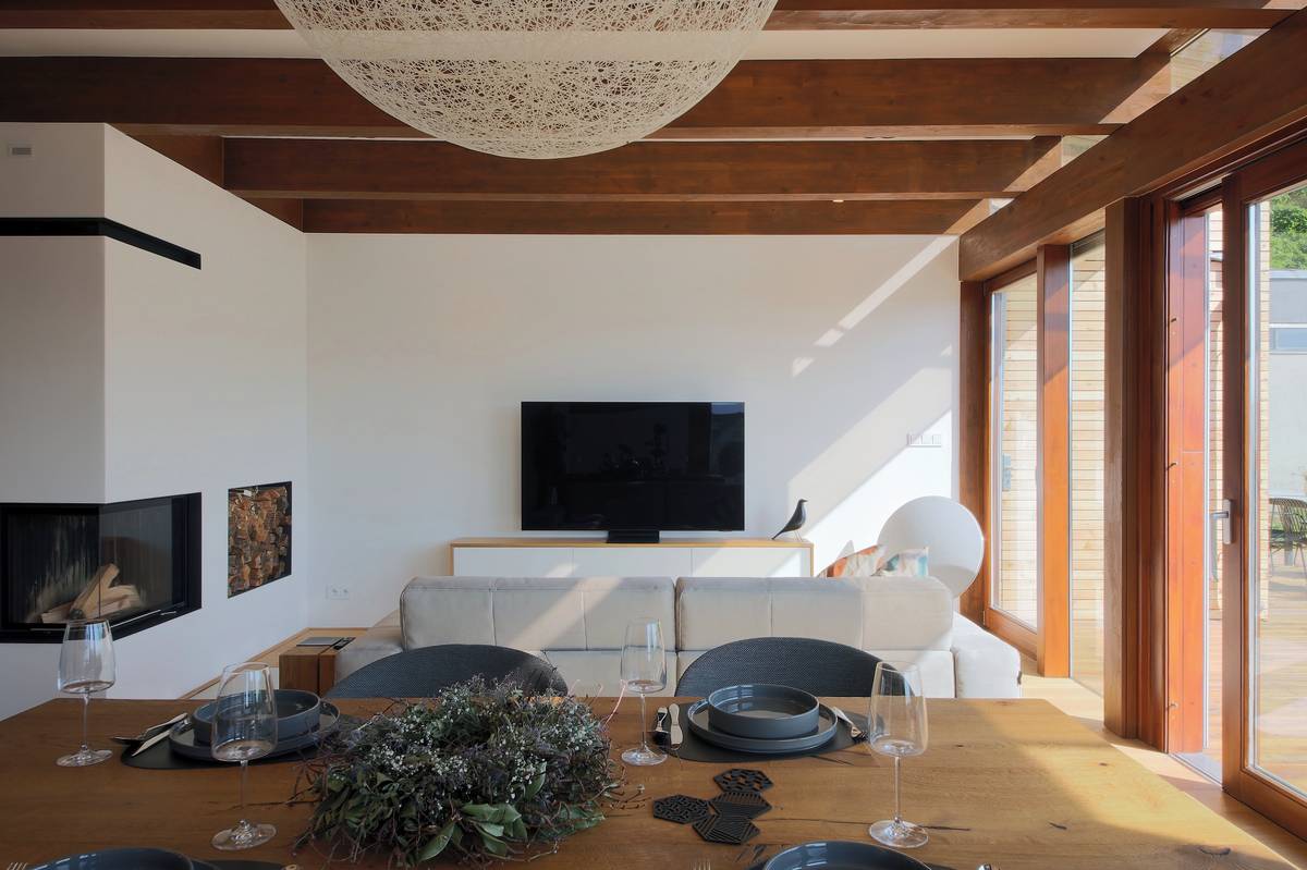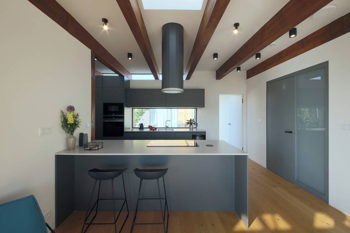 Architekt navrhl nejenom přístavbu, ale i její interiér a také interiér upravovaných částí původního domu.